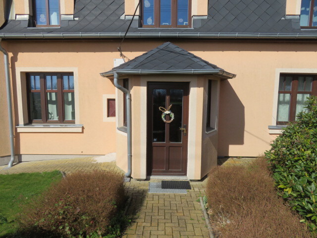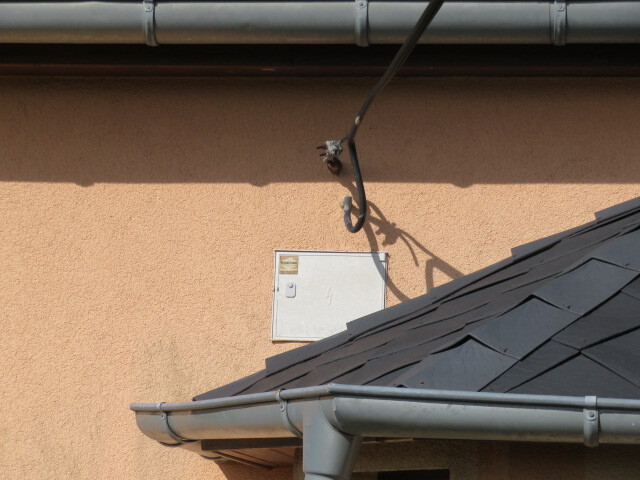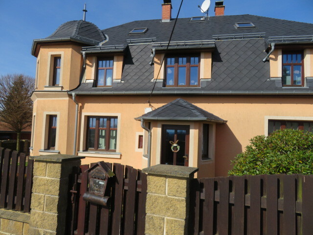 Fasáda domu je zateplená a opatřená barevným nátěrem. Objekt je částečně