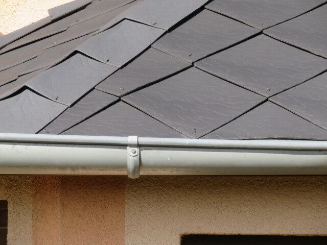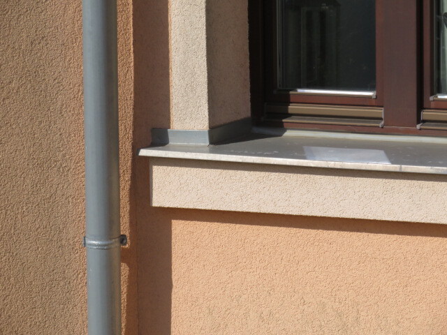 je mansardová s krytinou ze šablon, opatřená klempířskými prvky – žlaby