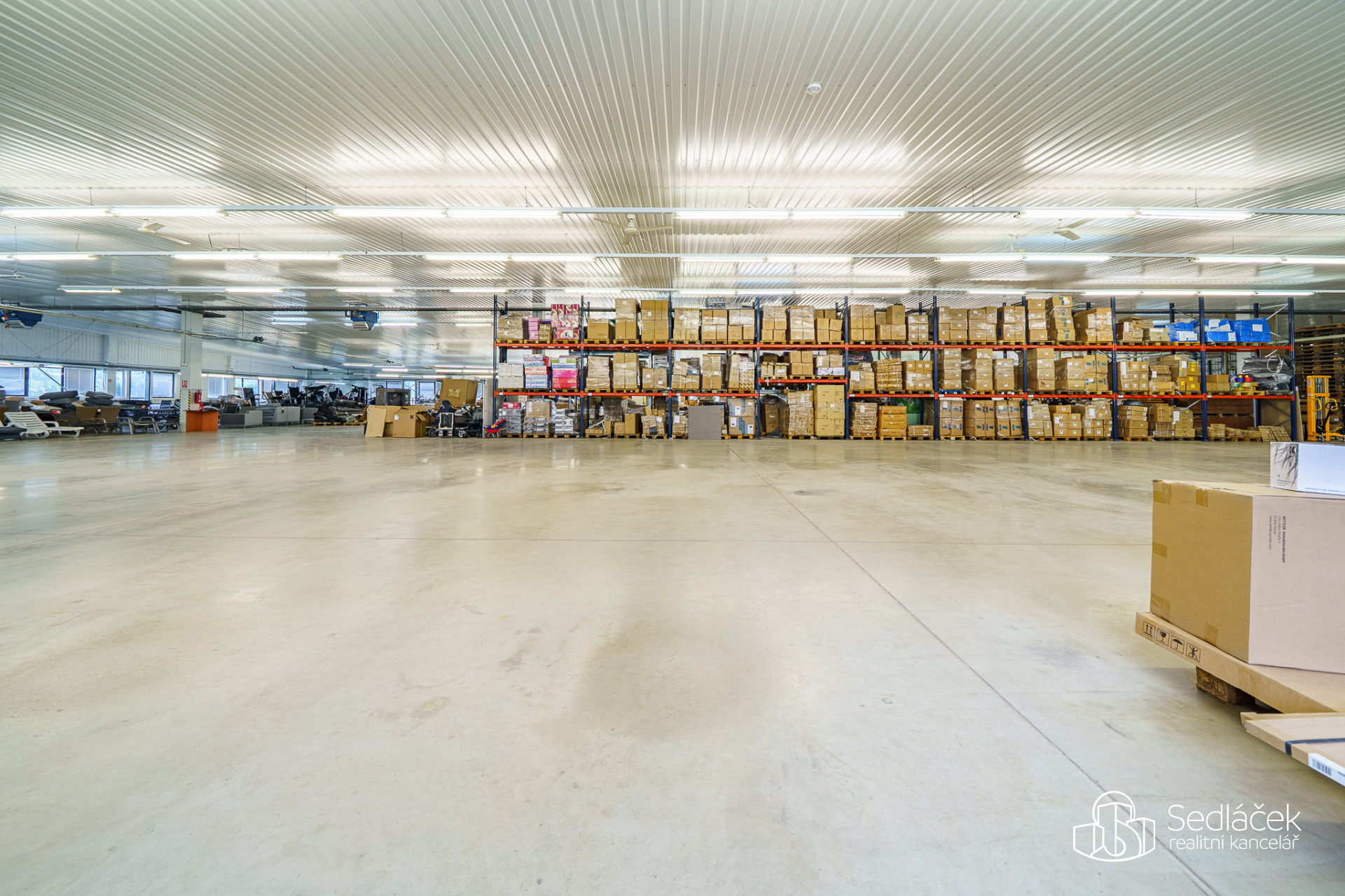 - Hala v patře (2 489 m²): velkorysá výrobní plocha s nakládací rampou, přístup pro kamionovou dopravu a velké manipulační plochy