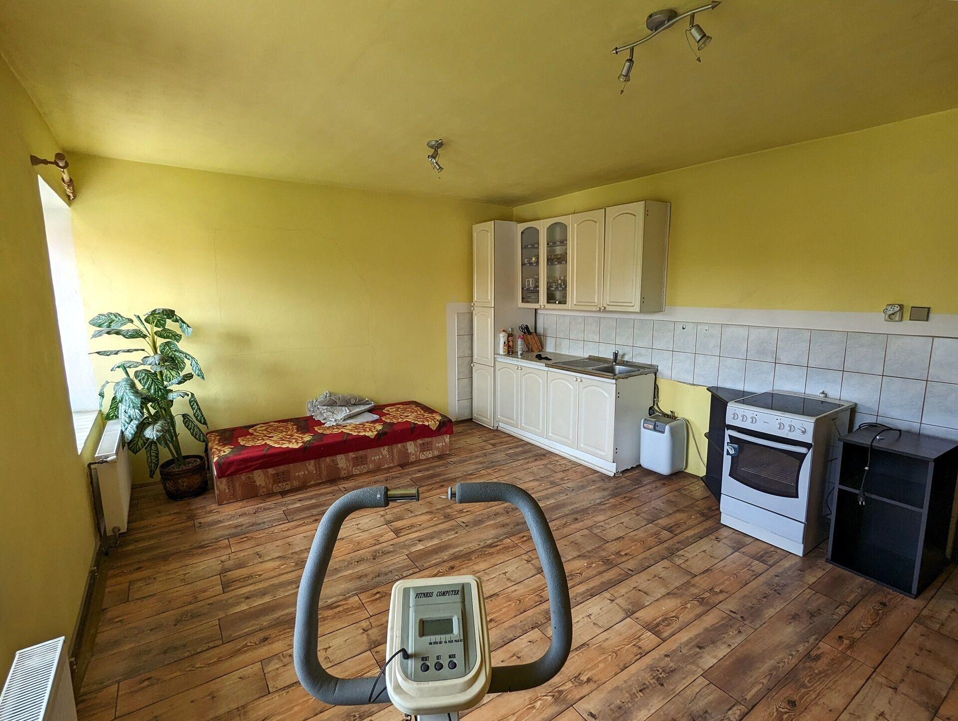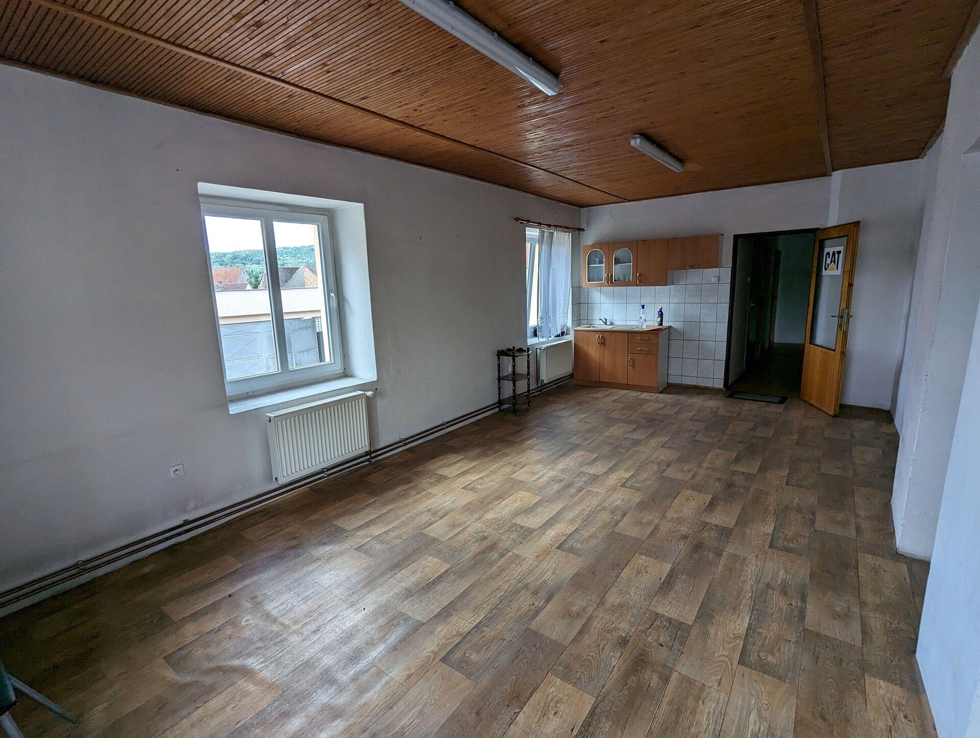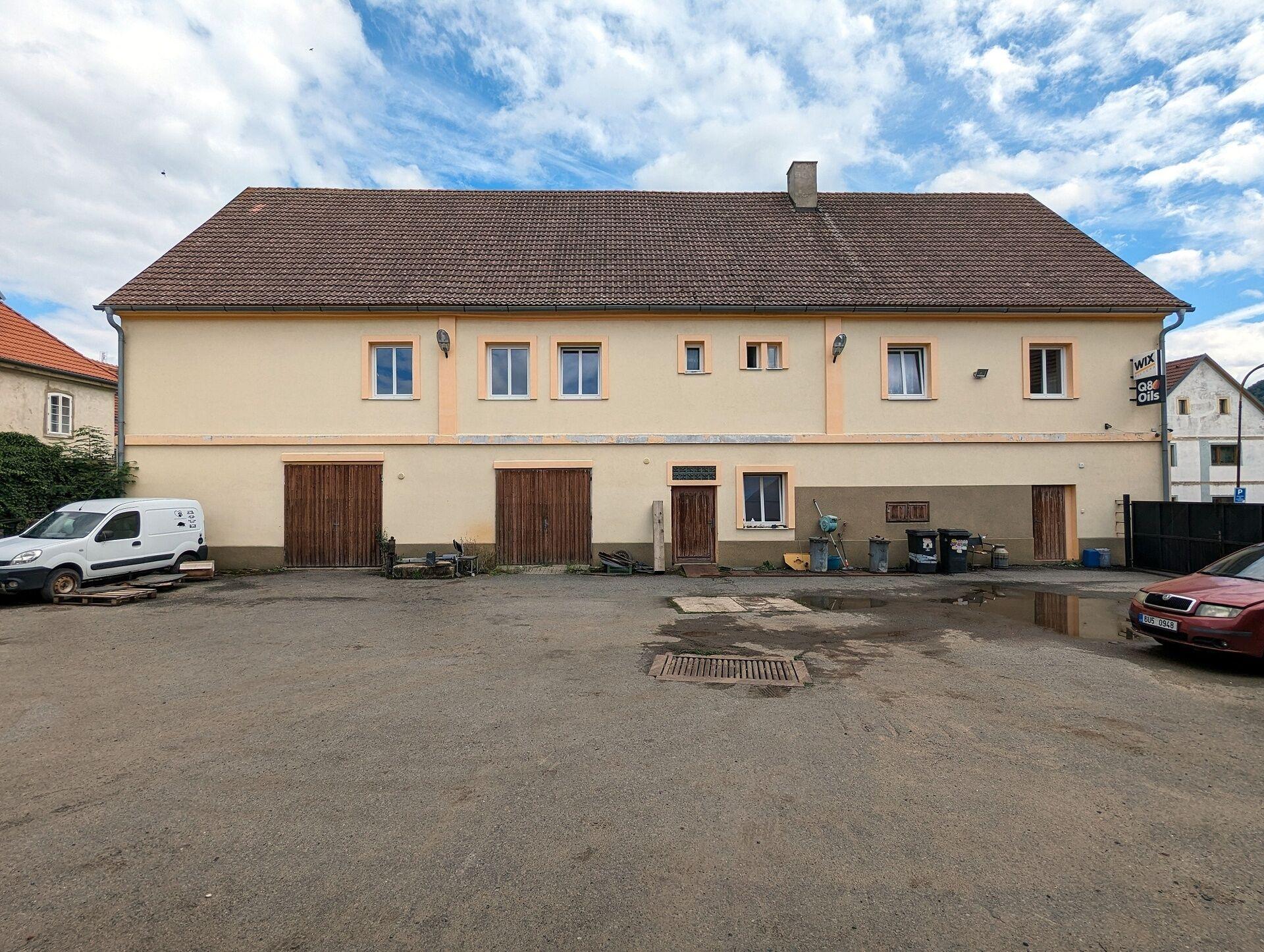 Dům zahrnující 2 byty, kanceláře, další prostory k přestavbě a řadové garáže