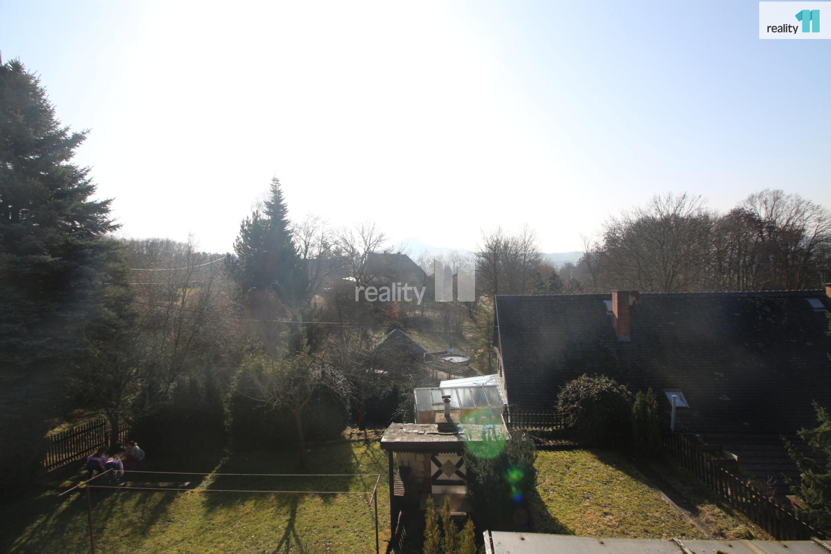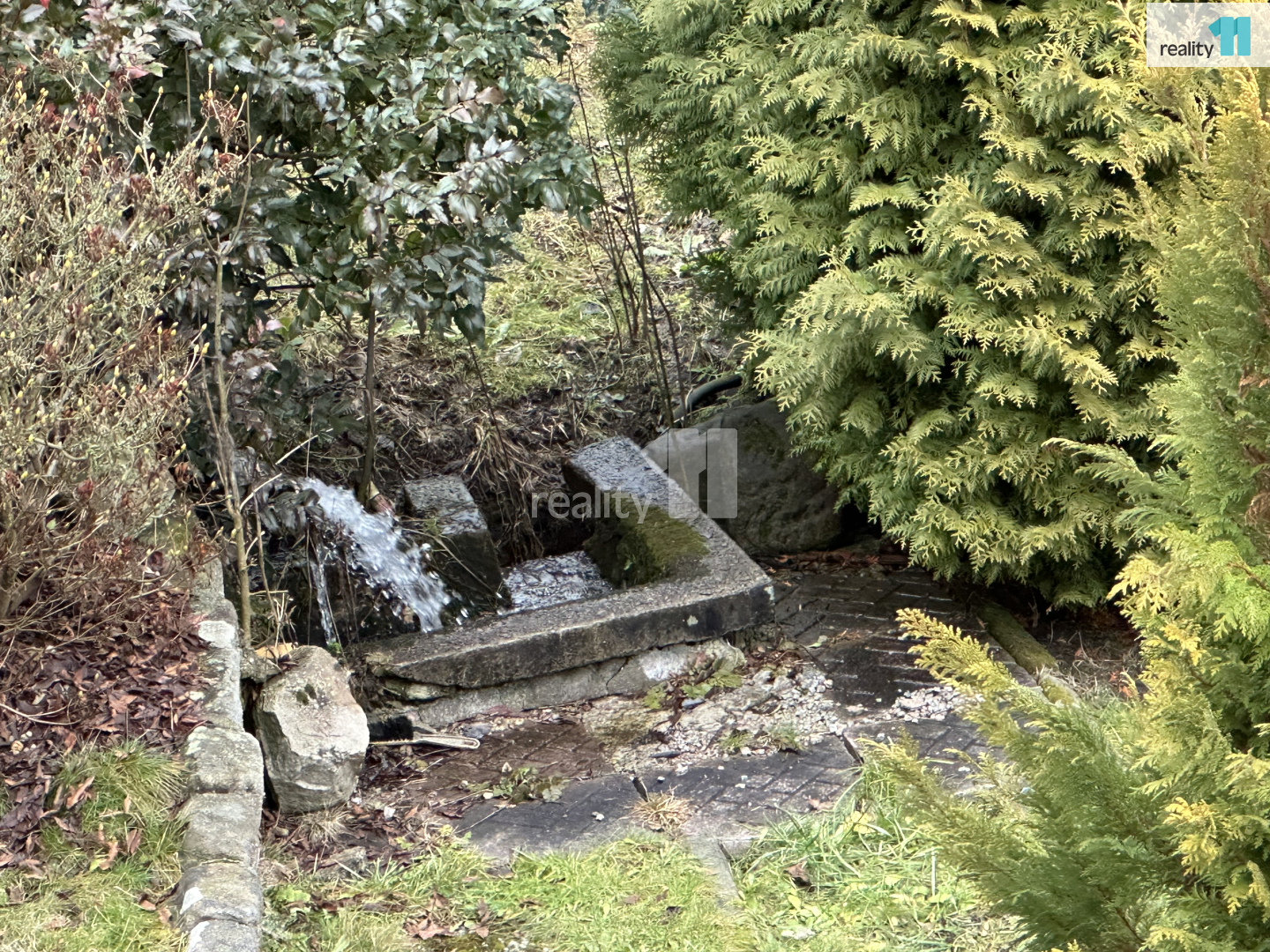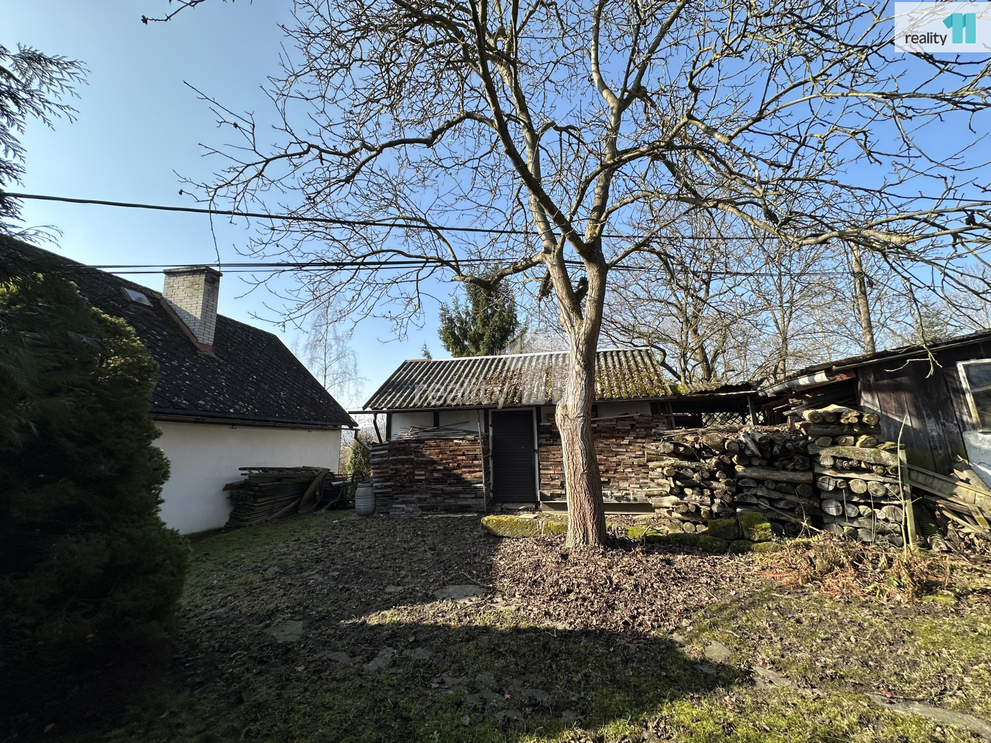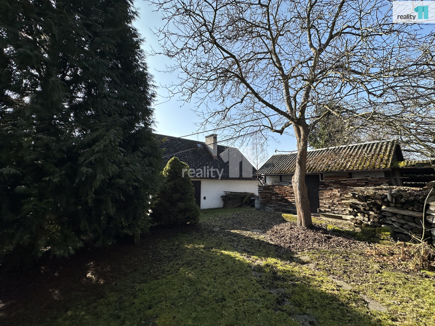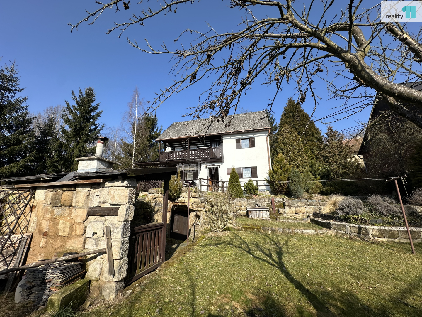 • Zahrada je svažitá, jsou zde ovocné stromy a Ořešák (vlašské ořechy).