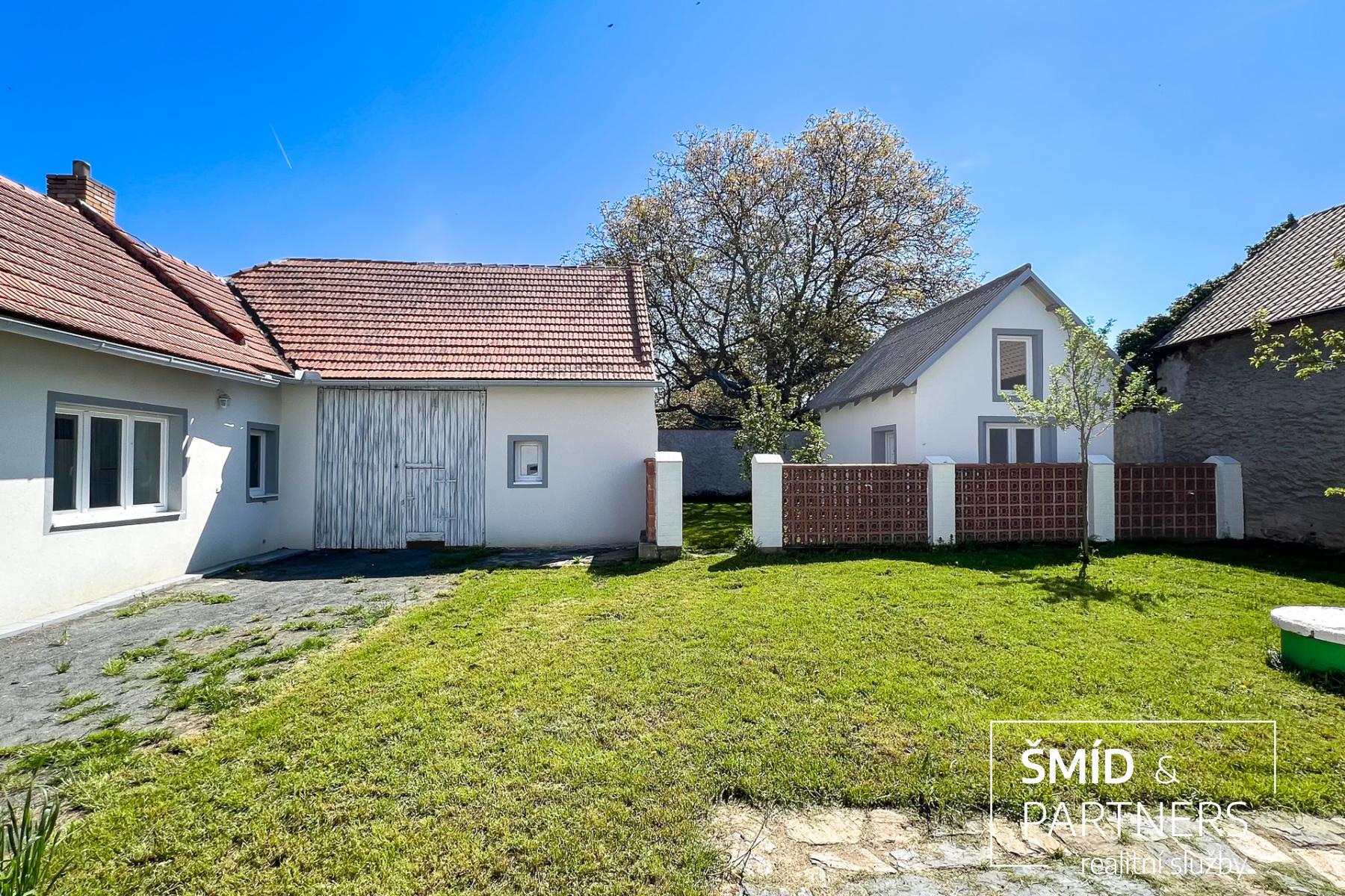 První z domů je typickou venkovskou stavbou s celkovou zastavěnou plochou 177m2, která je rozdělena na obytnou část, jenž prošla zcela zásadní rekonstrukcí a vznikl zde moderní svěží interiér o dispozici 3+kk s celkovou obytnou plochou 70m2 - kuchyňský kout je vybaven kuchyňskou linkou s elektrickou a mikrovlnkou troubou, varnou deskou a digestoří, samostatný obývací pokoj, ložnice, prostorná koupelna s vanou, sprchovým koutem, 2x WC, skladem a technickou místností. Nově jsou taženy rozvody elektřiny, vody, odpady, nová plastová okna, nové vstupní i interiérové dveře, štuky, výmalby. Jako podlahová krytina byl zvolen vysoce zátěžový vinyl, v koupelně, na WC v technické místnosti dlažba. Koupelna je obložena moderními obklady, usazena nová sanita, doplněno atraktivní podsvícení, do technické místnosti usazen bojler na ohřev teplé vody, příprava na umístění pračky a sušičky. Tento dům je částečně podsklepen. Na obytnou část domu navazuje původní hospodářská část s užitnou plochou 54,4m2, která je rozdělena na stodolu a dílnu.