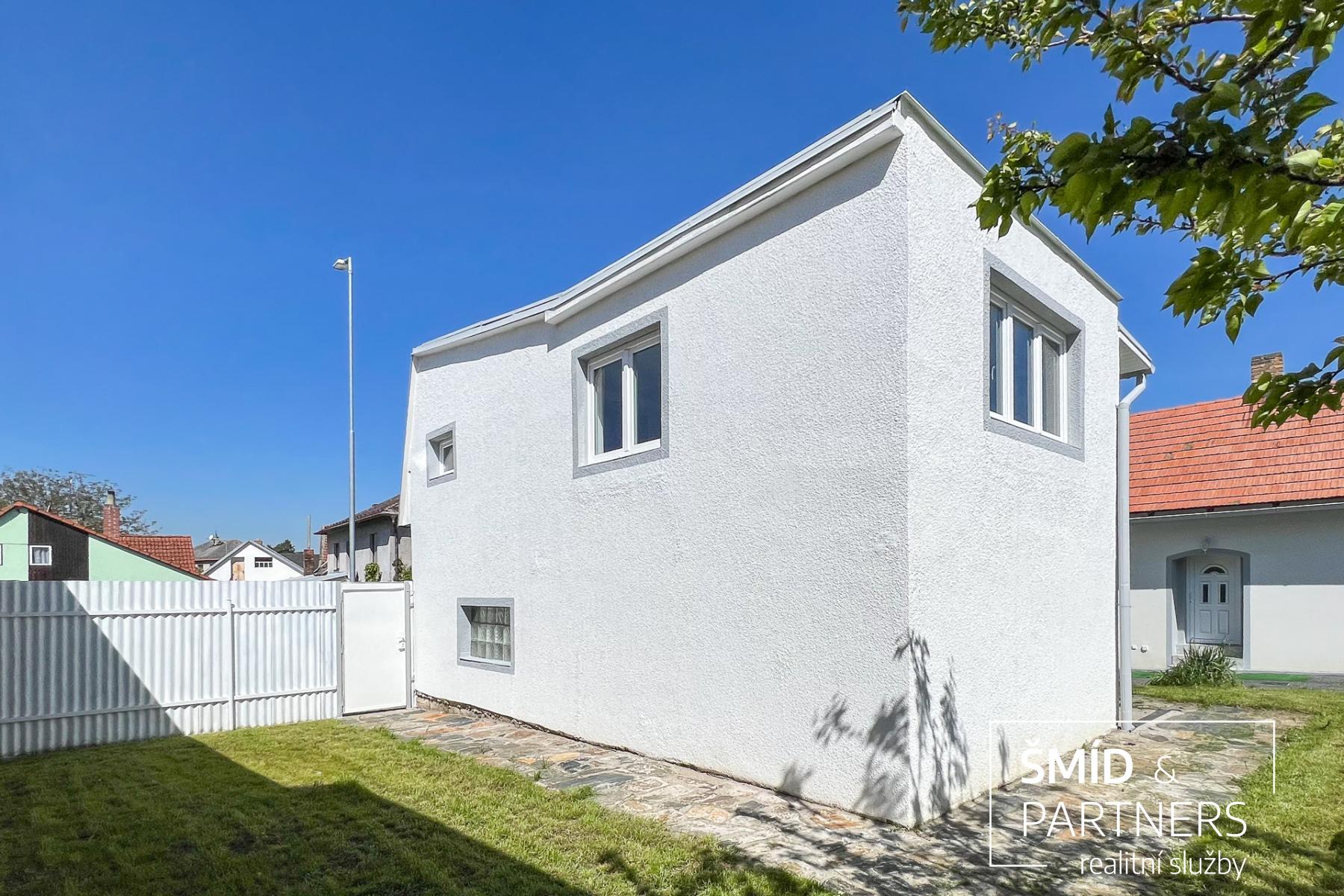 Druhou stavbou na pozemku je zděný samostatně stojící dům se zastavěnou plochou 62m2 s bytovou jednotkou 2+1 s koupelnou s WC o obytné ploše 44m2, garáží a skladem. Také tento dům prošel rekonstrukcí vč. rozvodů elektřiny, vody, odpadů. Instalována je nová kuchyňská linka s elektrickou troubou, varnou deskou, koupelna s WC obložena keramickým obkladem, vybavena novou sanitou, na podlaze položen vysoce zátěžový vinyl, nová plastová okna, vstupní i interiérové dveře. Vytápění je zajištěno pomocí elektrických topných panelů, ohřev vody zajišťuje bojler.