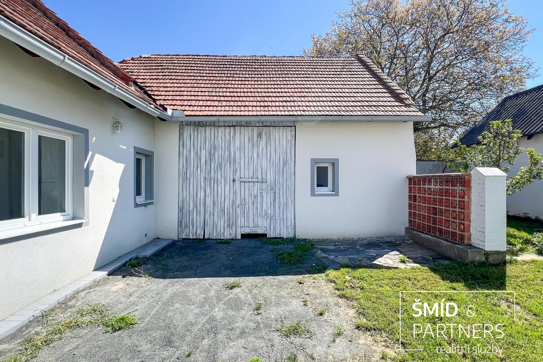 Prodej RD v Krchlebech po rekonstrukci, pozemek 622m2, vjezd, garáž, dílna, sklad, stodola