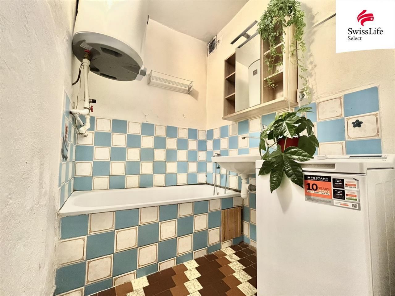 Byt o užitné ploše 59 m, se dvěma sklepy 4 m a parkováním přímo před domem, se nachází v posledním, tedy třetím, nadzemním podlaží ve zděném cihlovém bytovém domě.