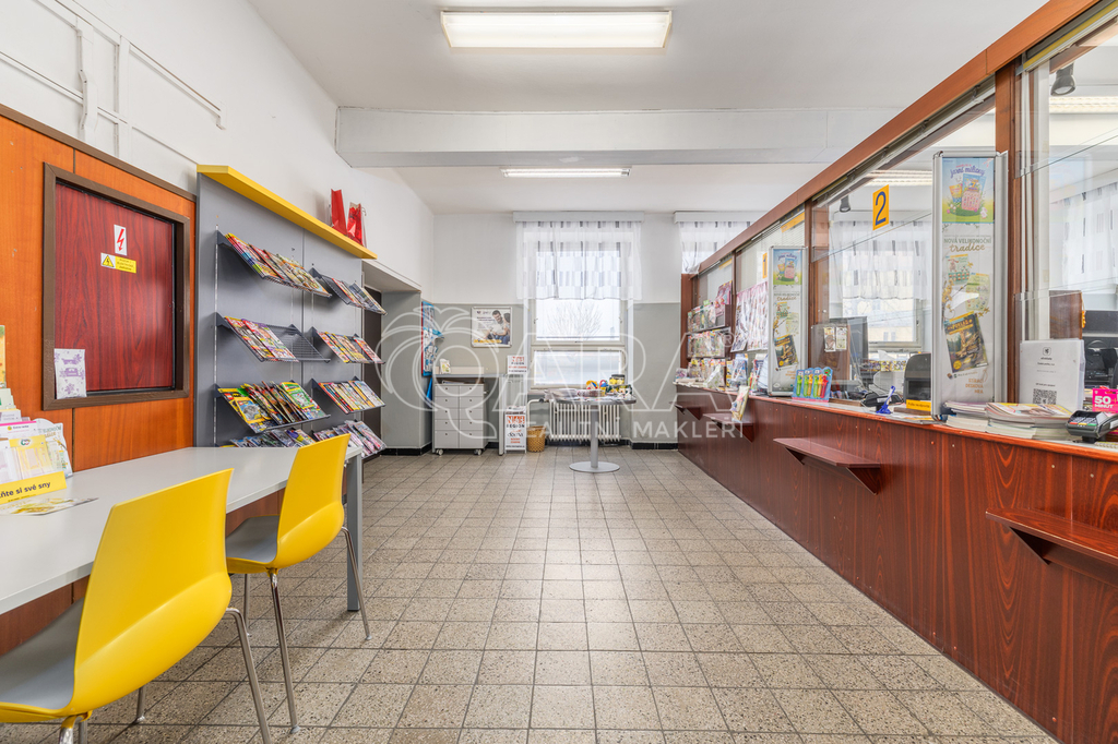 Nebytová jednotka je dlouhodobě využívána Českou poštou, která zde provozuje svou pobočku. Pro investora to znamená stabilního a prověřeného nájemce s pravidelným provozem služeb pro místní obyvatele. Prostory o celkové ploše 123,7 m² slouží jako kancelářské a provozní zázemí pobočky a zahrnují hlavní kancelář pro obsluhu klientů, další kancelářské prostory, skladovací místnosti, chodbu, sociální zařízení a zázemí pro zaměstnance včetně menší kuchyňky.