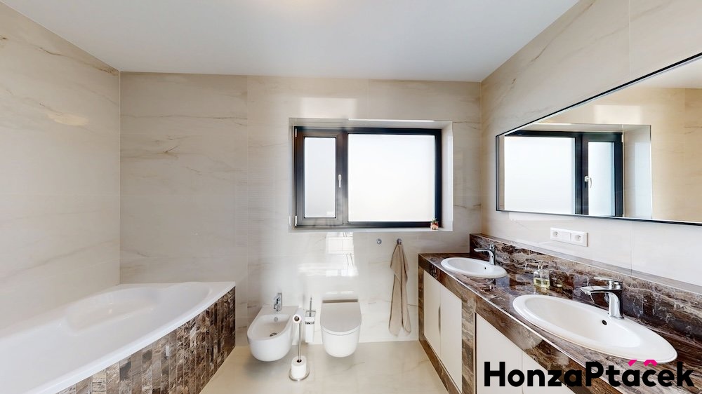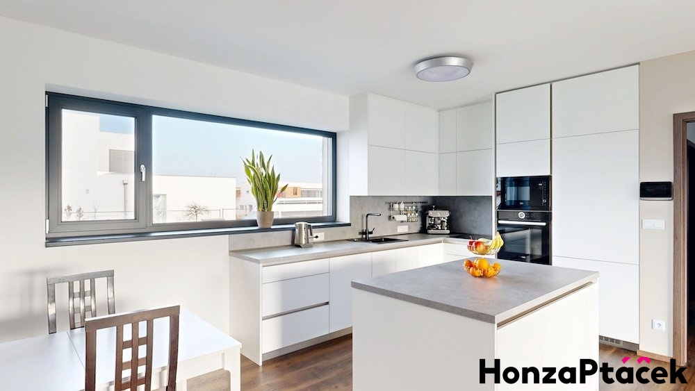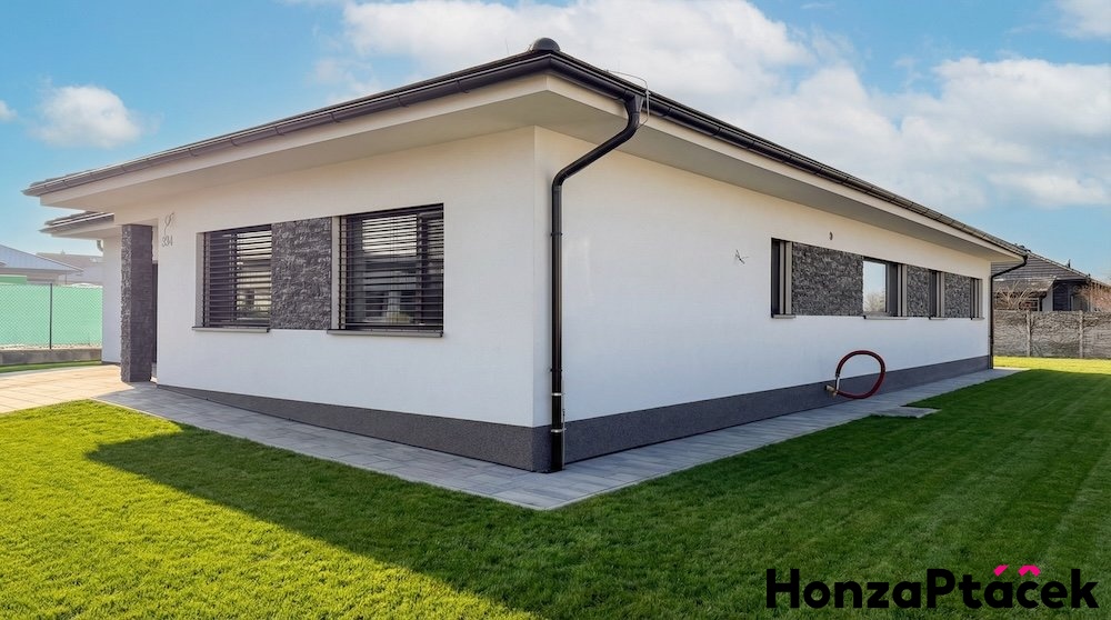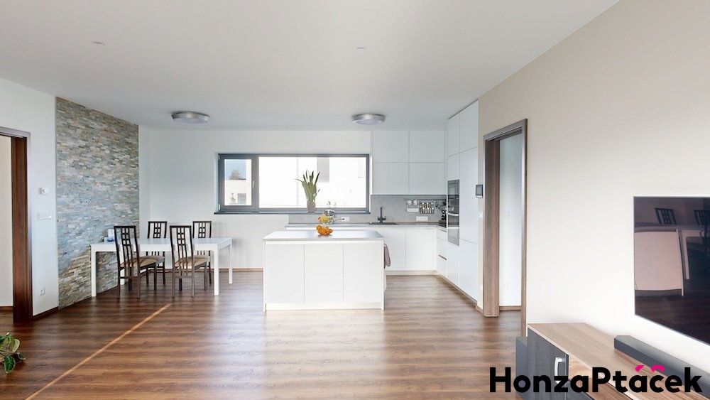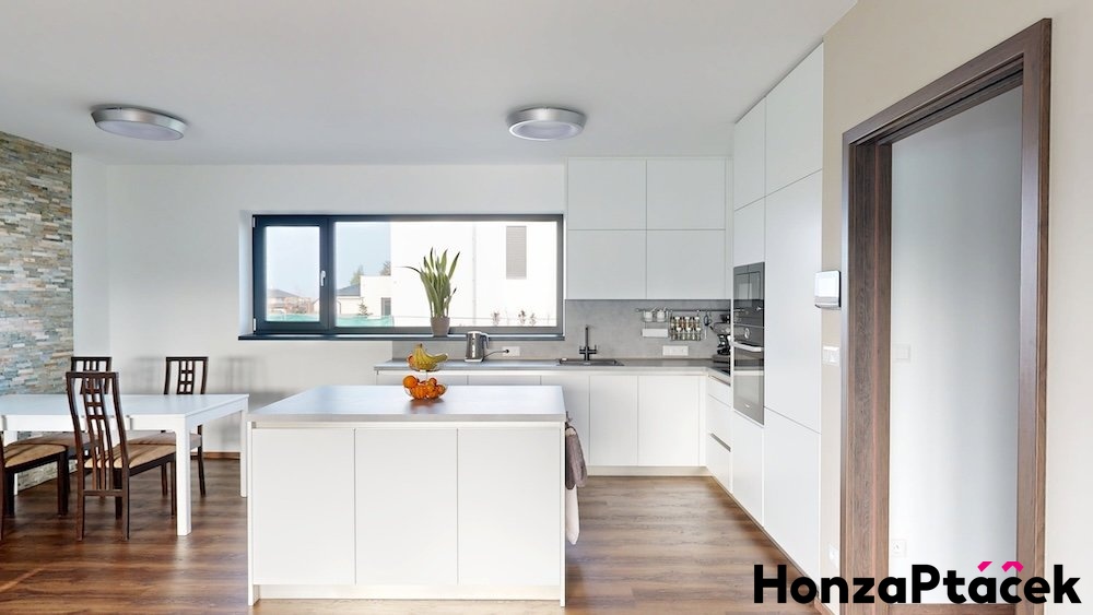 Dům o dispozici 6+kk a celkové užitné ploše 190 m² (včetně garáže) byl zkolaudován v roce 2023 a je situován na pozemku o výměře 989 m². V interiéru se snoubí funkčnost a čisté linie – centrálním prvkem je prostorný obývací pokoj propojený s terasou a zahradou. Kuchyňská část je vybavena moderními vestavnými spotřebiči a nabízí dostatek prostoru pro rodinné stolování i vaření.