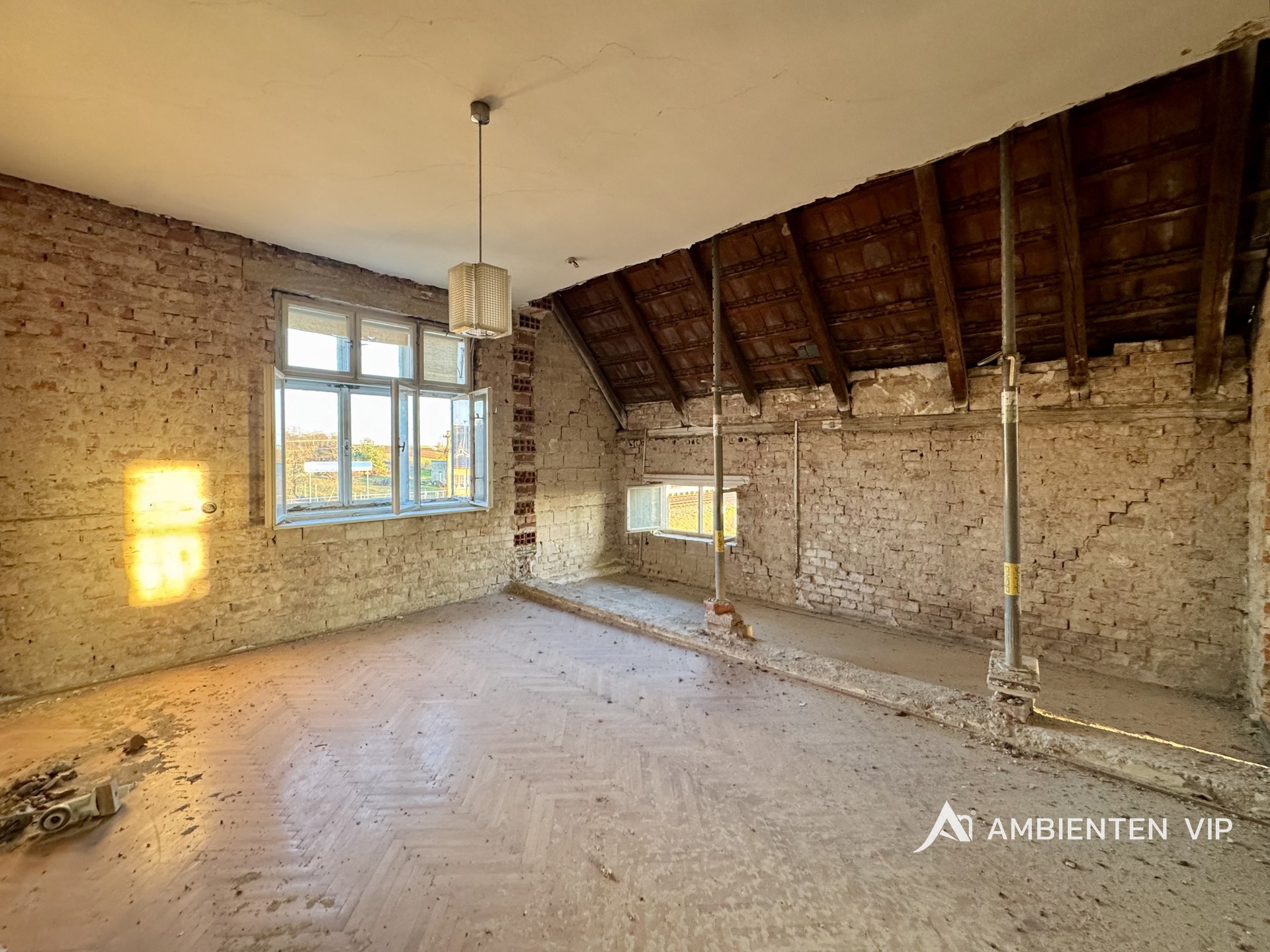 Jménem AMBIENTEN VIP si vám dovoluji exkluzivně nabídnout prvorepublikovou vilu postavenou v meziválečném období v obci Křenovice u Slavkova. Vila stojí na rozsáhlém pozemku o velikosti 2 142 m² a svým charakterem, historií a potenciálem představuje výjimečné místo pro vznik luxusního rodinného sídla či reprezentační rezidenci se soukromím. Celková plocha domu aktuálně činí 305 m², přičemž dle architektonické studie je plánované plochu rozšířit až na 379 m² a upravit dispozici na 9+kk. Vizualizace nabízí pohled na vilu dle studie.