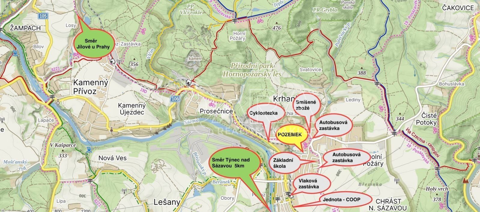 Autobus i vlak v blízkosti, kompletní občanská vybavenost v Týnci nad Sázavou, Jílovém u Prahy či Kamenici. Praha je snadno dostupná, takže si užijete klid venkova a přitom zůstanete kousek od města.