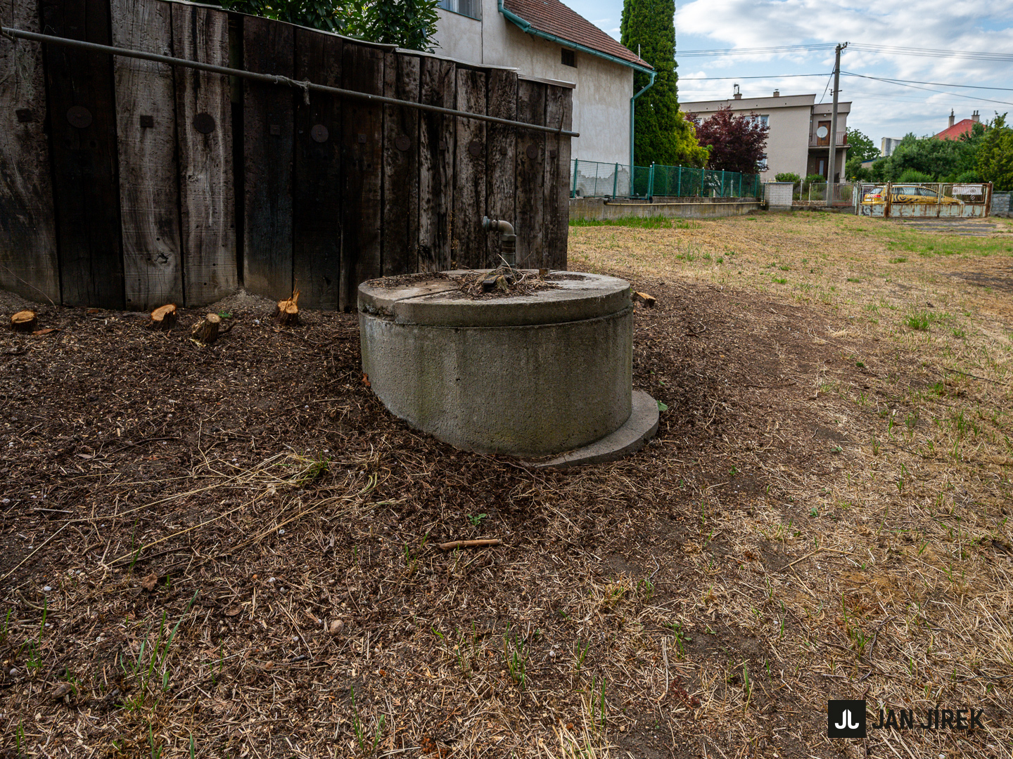 Obecní vodovod je na protější straně silnice.