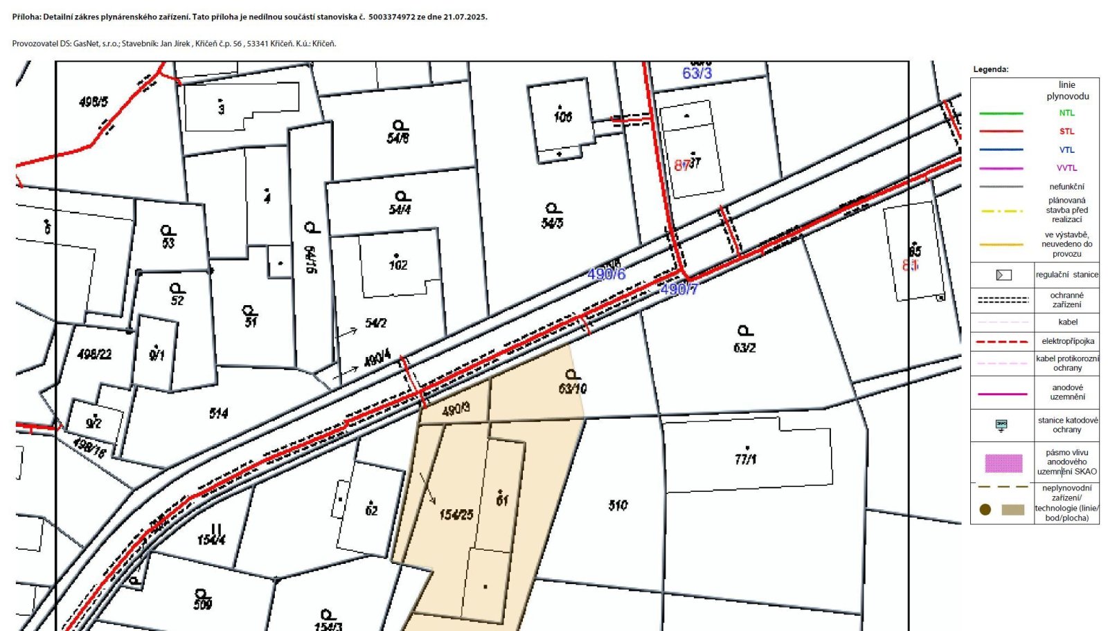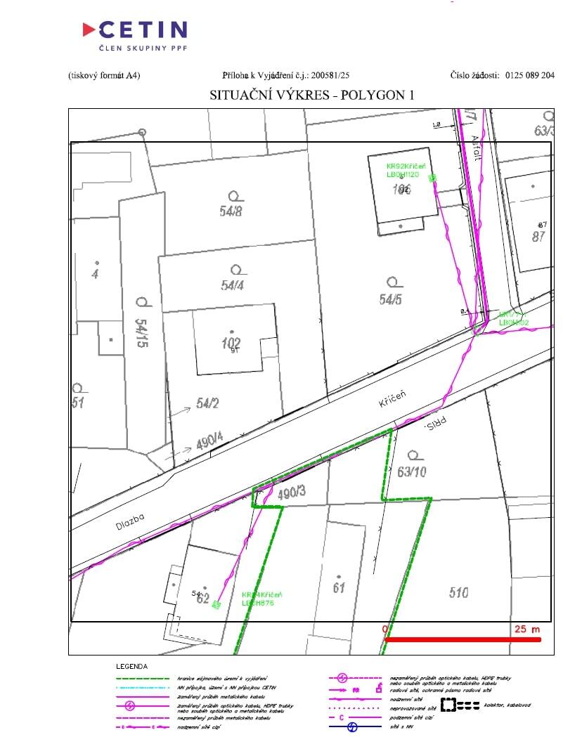 Elektřina, plyn a CETIN vede při bližší straně silnice.