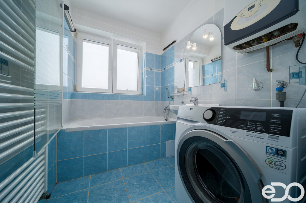 Koupelna je zděná a její velkou výhodou je okno, které přináší denní světlo i přirozené větrání – detail, který oceníte každý den.