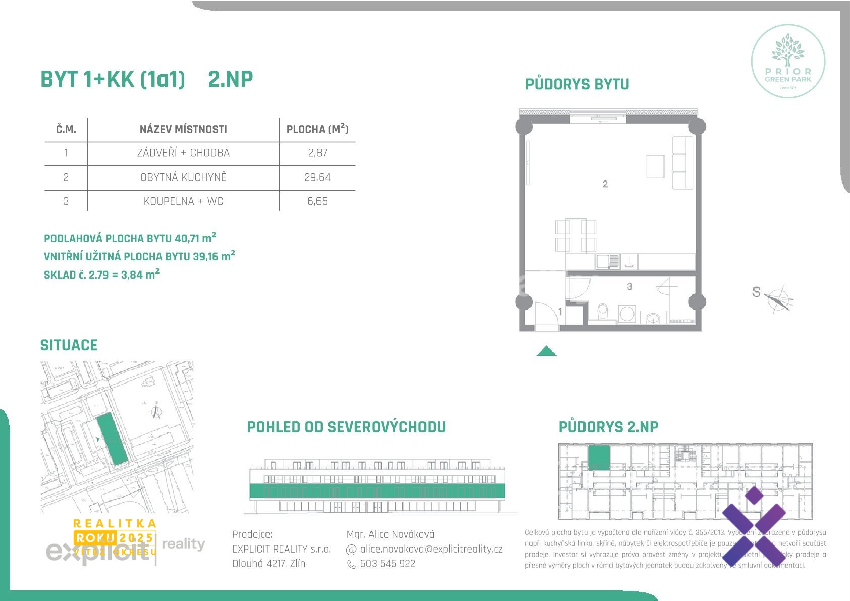 Mgr. Alice Nováková & Explicit Reality nabízí možnost výběru z 37 bytových jednotek o dispozicích 1+kk, 2+kk a 3+kk v novém polyfunkčním domě PRIOR KROMĚŘÍŽ, který vzniká citlivou rekonstrukcí ikonické budovy na Slovanském náměstí. Projekt spojuje výbornou městskou adresu s klidným bydlením. Část bytů je orientována do přilehlého parku, což zajišťuje příjemný výhled i dostatek soukromí.