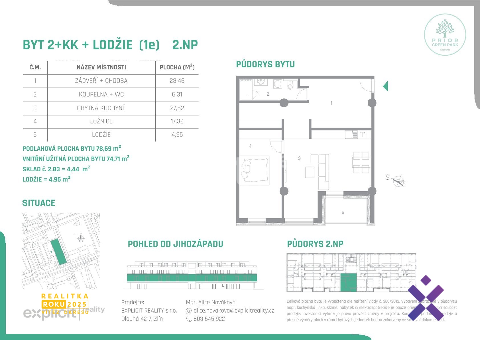 Mgr. Alice Nováková & Explicit Reality nabízí možnost výběru z 37 bytových jednotek o dispozicích 1+kk, 2+kk a 3+kk v novém polyfunkčním domě PRIOR KROMĚŘÍŽ, který vzniká citlivou rekonstrukcí ikonické budovy na Slovanském náměstí. Projekt spojuje výbornou městskou adresu s klidným bydlením. Část bytů je orientována do přilehlého parku, což zajišťuje příjemný výhled i dostatek soukromí.
