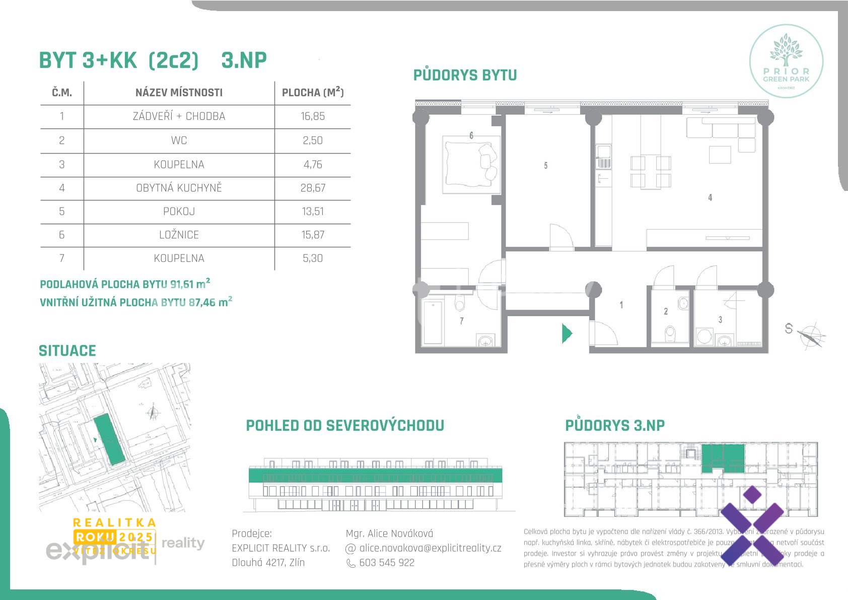 Mgr. Alice Nováková & Explicit Reality nabízí možnost výběru z 37 bytových jednotek o dispozicích 1+kk, 2+kk a 3+kk v novém polyfunkčním domě PRIOR KROMĚŘÍŽ, který vzniká citlivou rekonstrukcí ikonické budovy na Slovanském náměstí. Projekt spojuje výbornou městskou adresu s klidným bydlením. Část bytů je orientována do přilehlého parku, což zajišťuje příjemný výhled i dostatek soukromí.