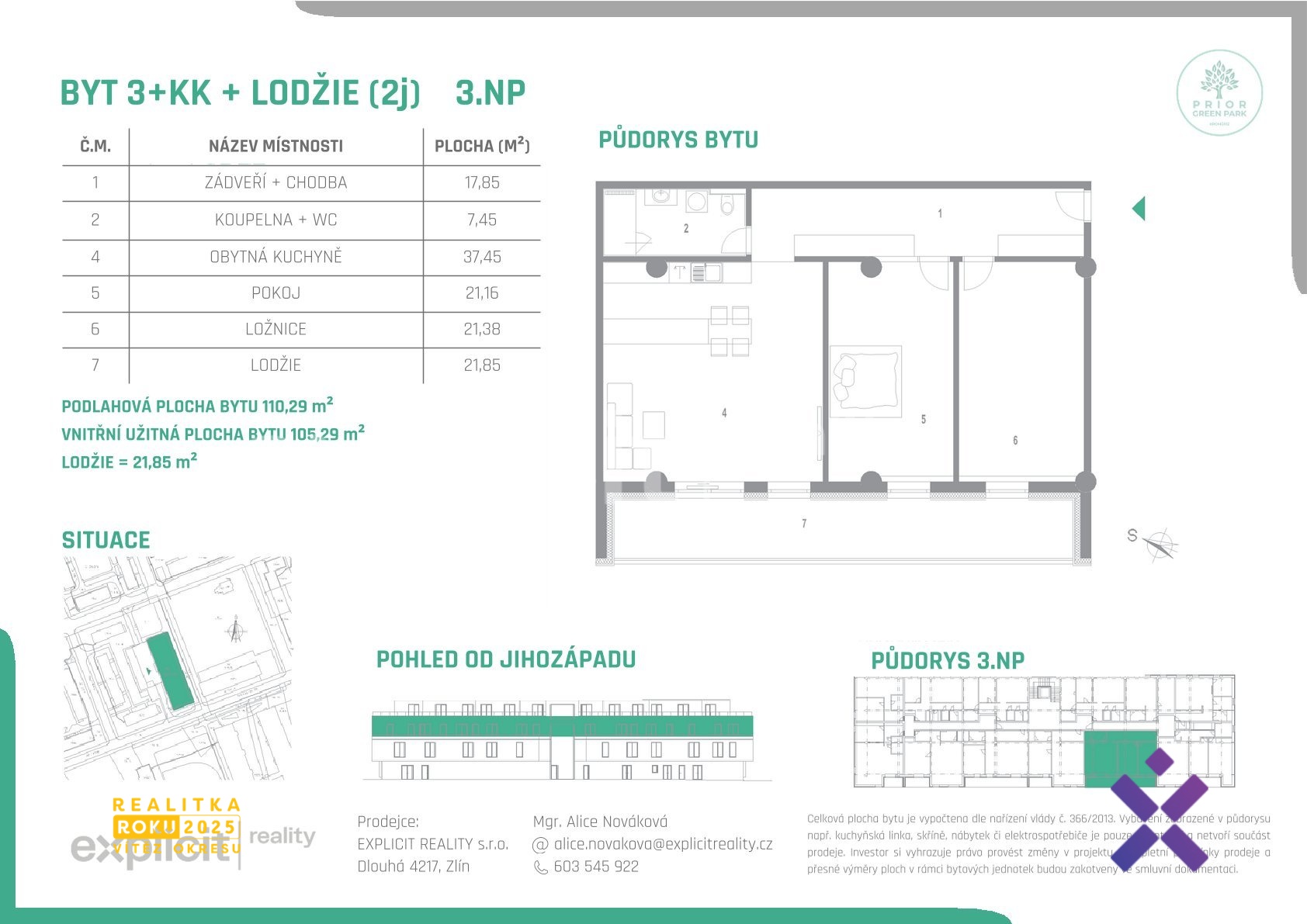 Prodej bytu 3+kk s lodžií 110,29 m², Prior Green Park Kroměříž
