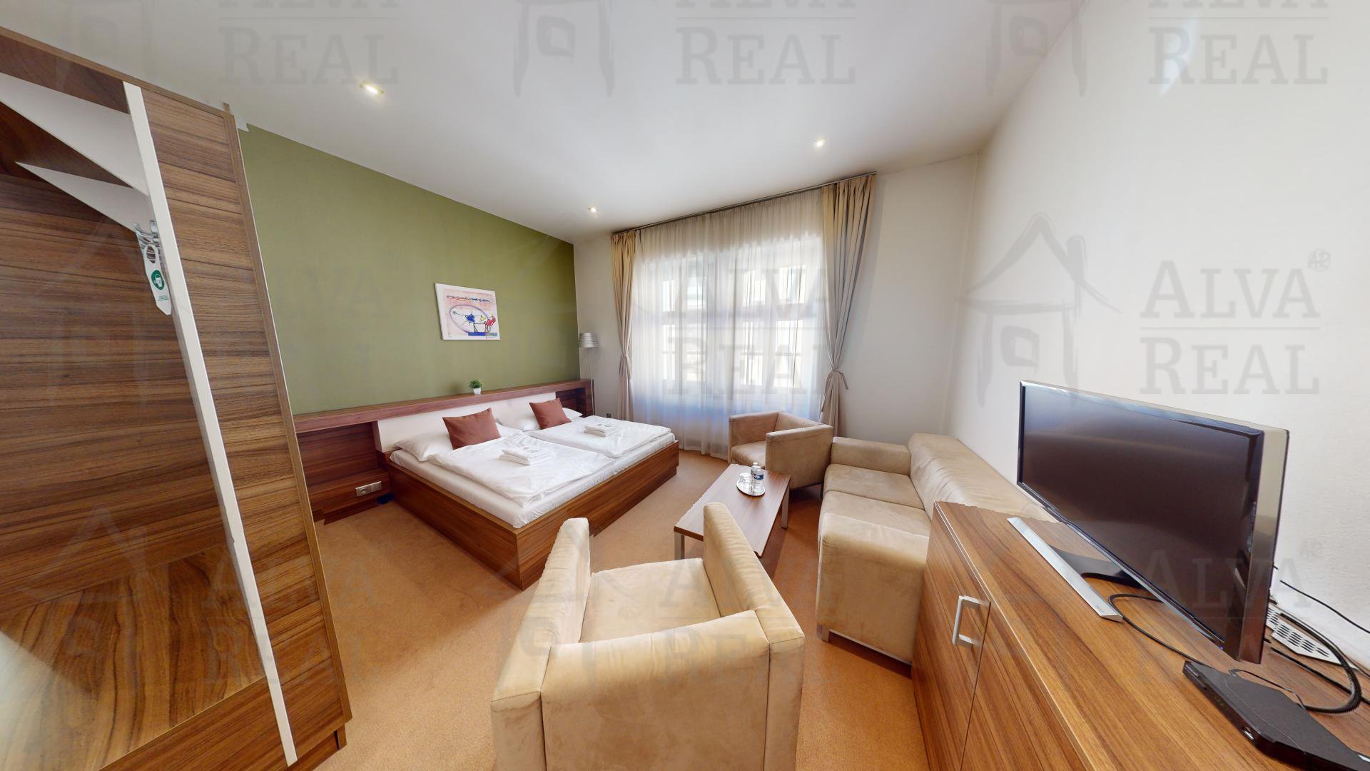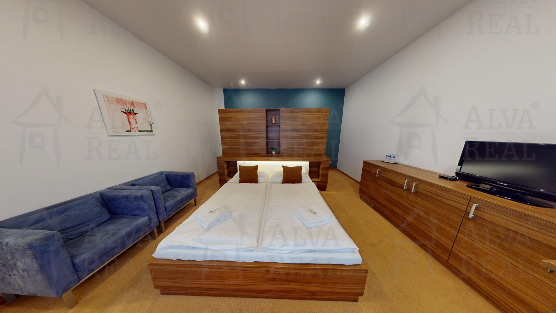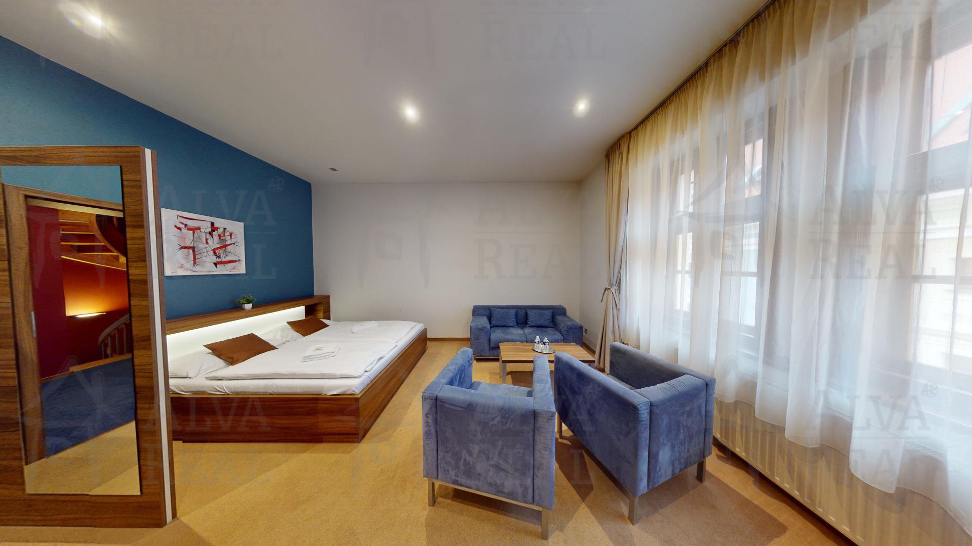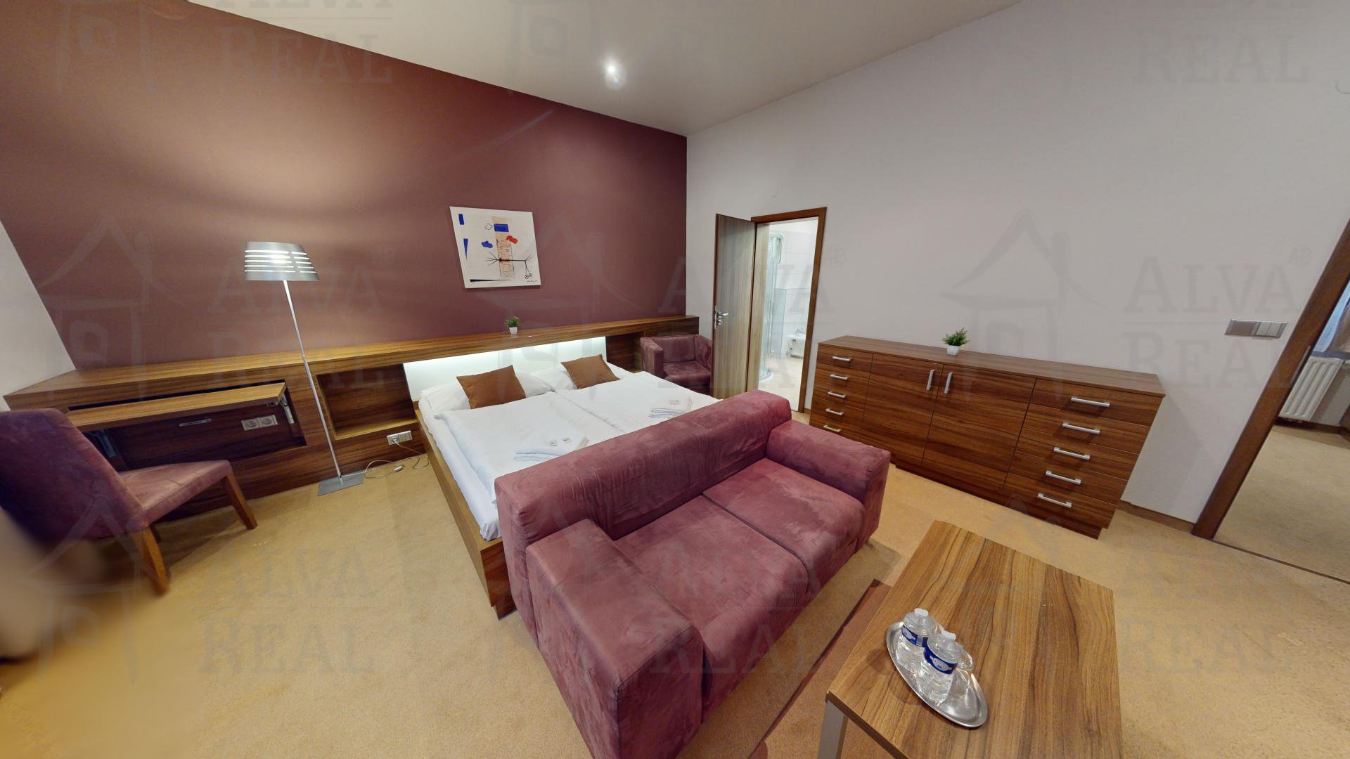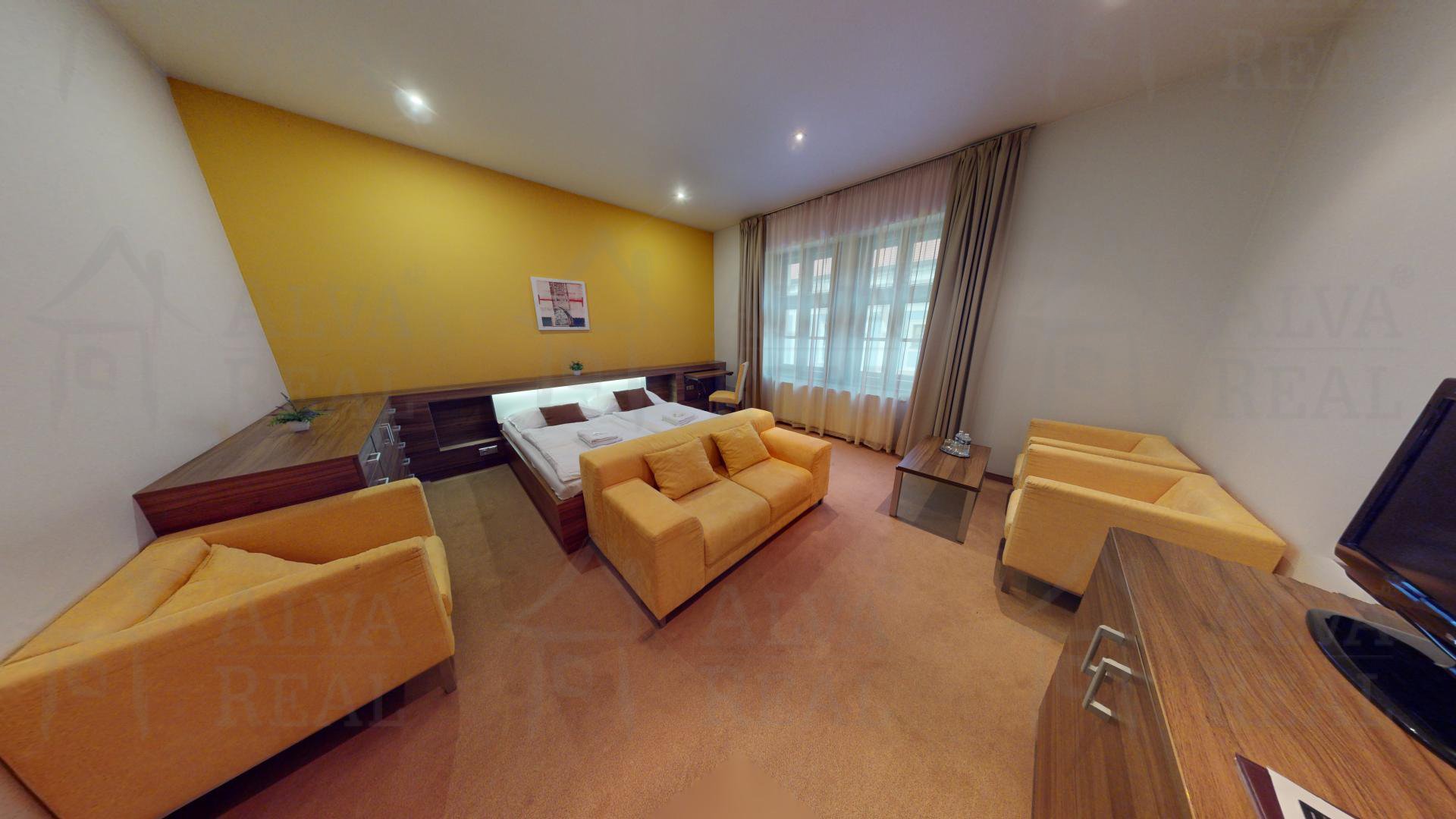 Hotel se nabízí plně vybavený a zařízený, k dispozici výtah (1.NP - 3.NP). Celkem 8 pokojů, z toho 5x dvoulůžkový + 2x čtyřlůžkový + 1x čtyřlůžkový apartmán.