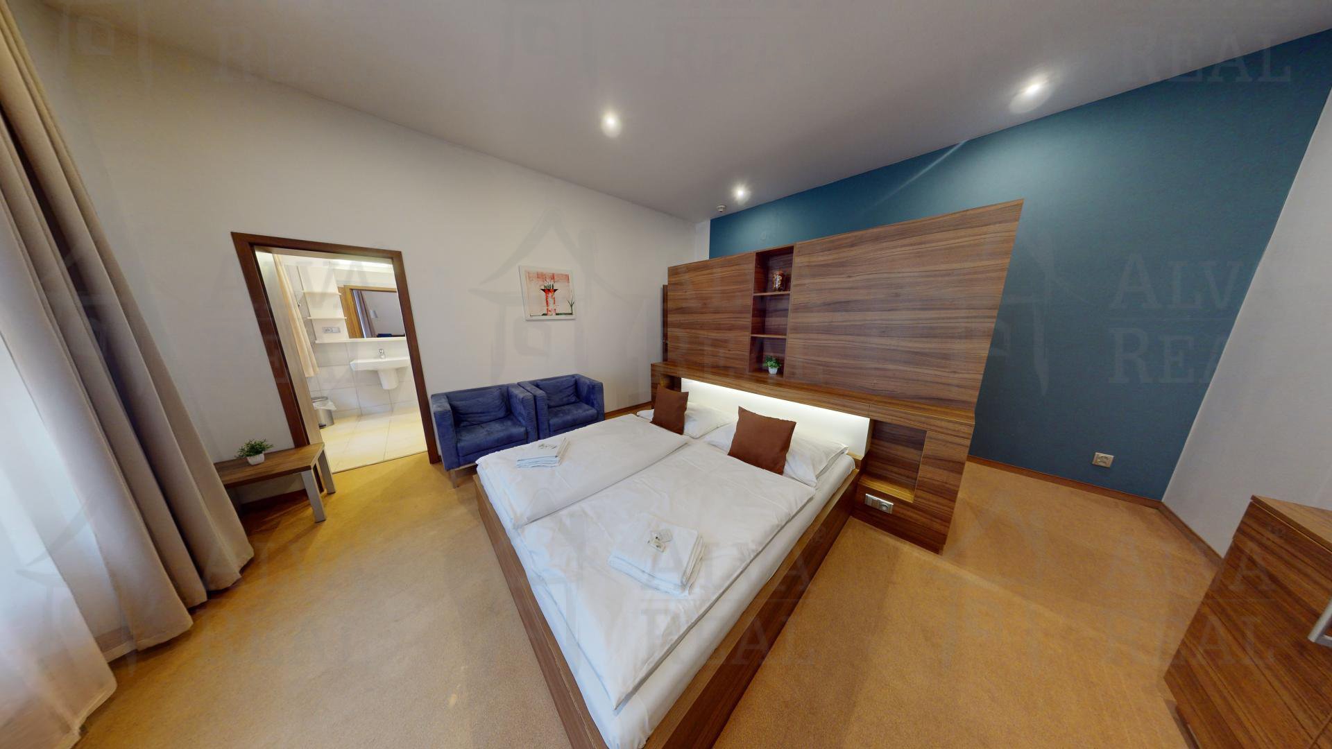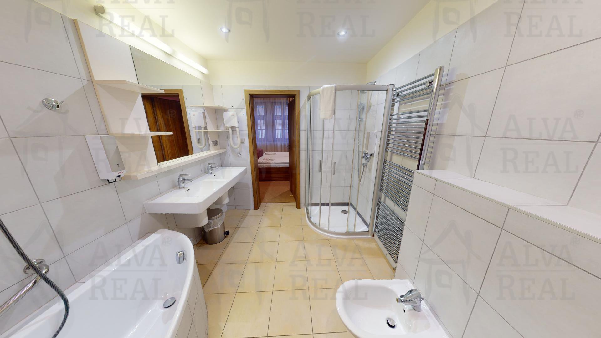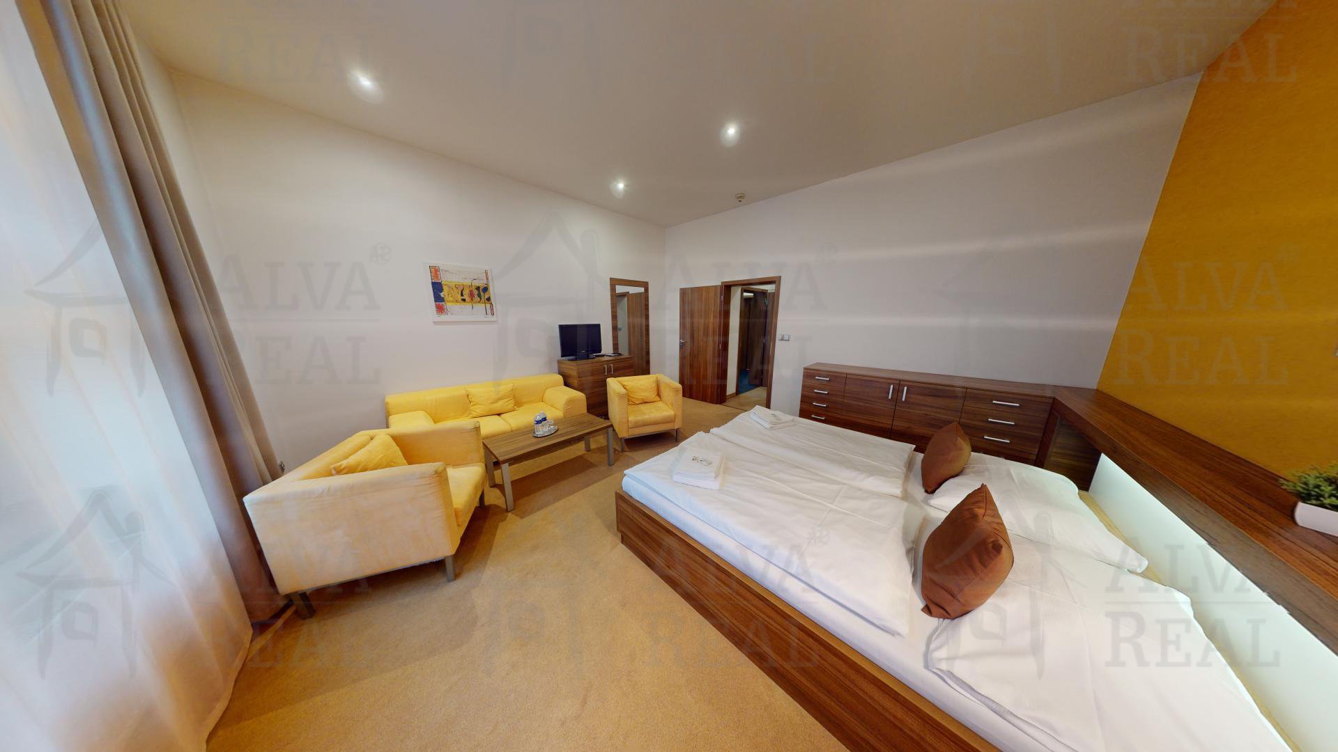 Informace o pokojích: Pokoje jsou vybaveny kvalitním nábytkem zhotoveným na míru, v každém z nich se nachází televize, dostatek úložných prostor (skříně, komody). Moderně zařízené koupelny, v každé sprchový kout, ve třech i vana. Velká zrcadla, dostatečné osvětlení.
