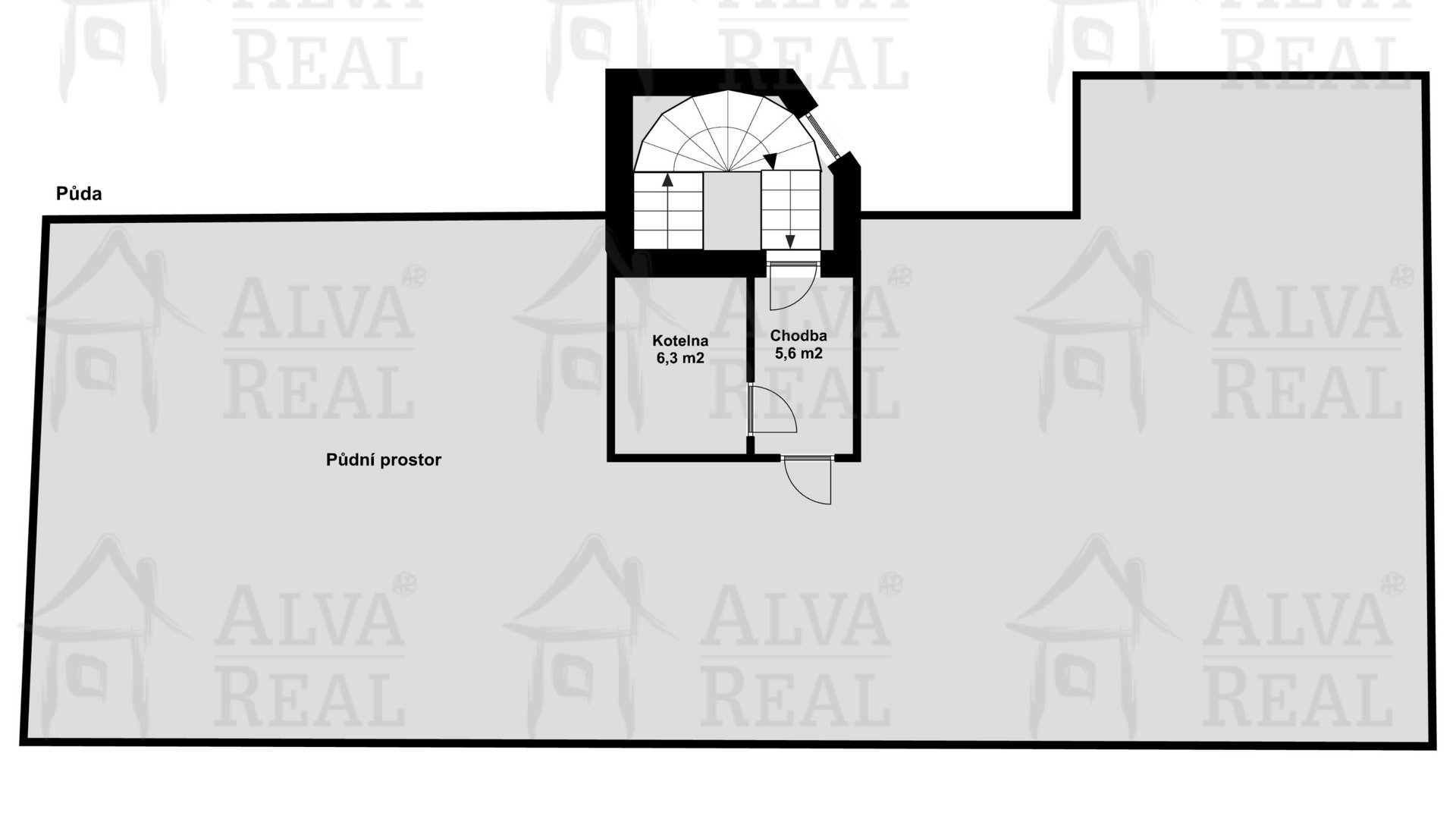 Prostorný půdní prostor, kotelna. Celková užitná plocha 651,6 m2 včetně wellness bez půdních prostor.