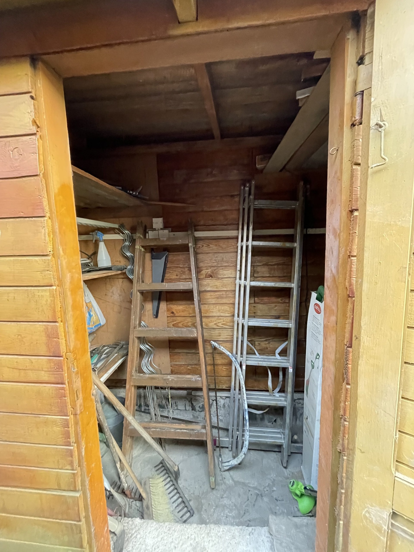 1.NP: zastřešená teráska s posezením, úložná předsíňka, 1 pokoj s kuchyňským koutem, komora, místnost na chemické WC, dřevník