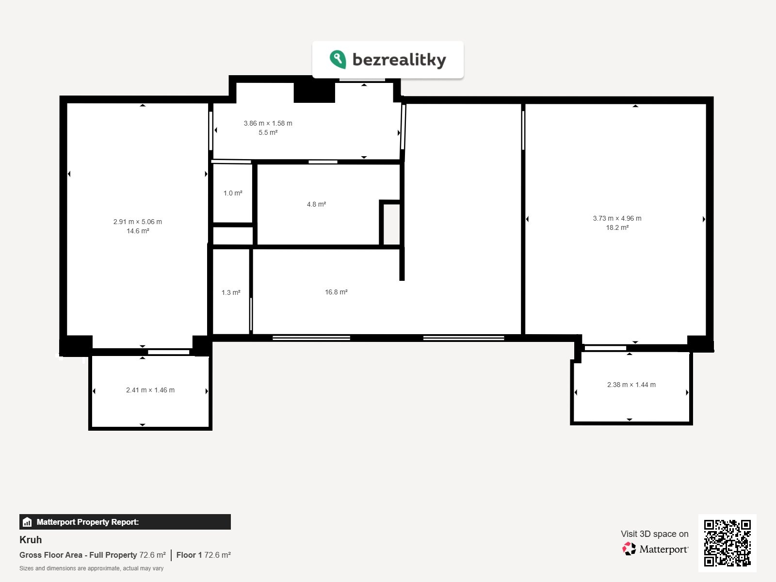 O celkové ploše 88 m², situovaný v klidné a vyhledávané obci Kruh v malebném podhůří Krkonoš. Byt se nachází v bytovém cihlovém domě v centru obce, sestává z kuchyně s jednoduchou kuchyňskou linkou, dvěma pokoji s balkony, jídelnou, samostatného wc a koupelny s vanou.