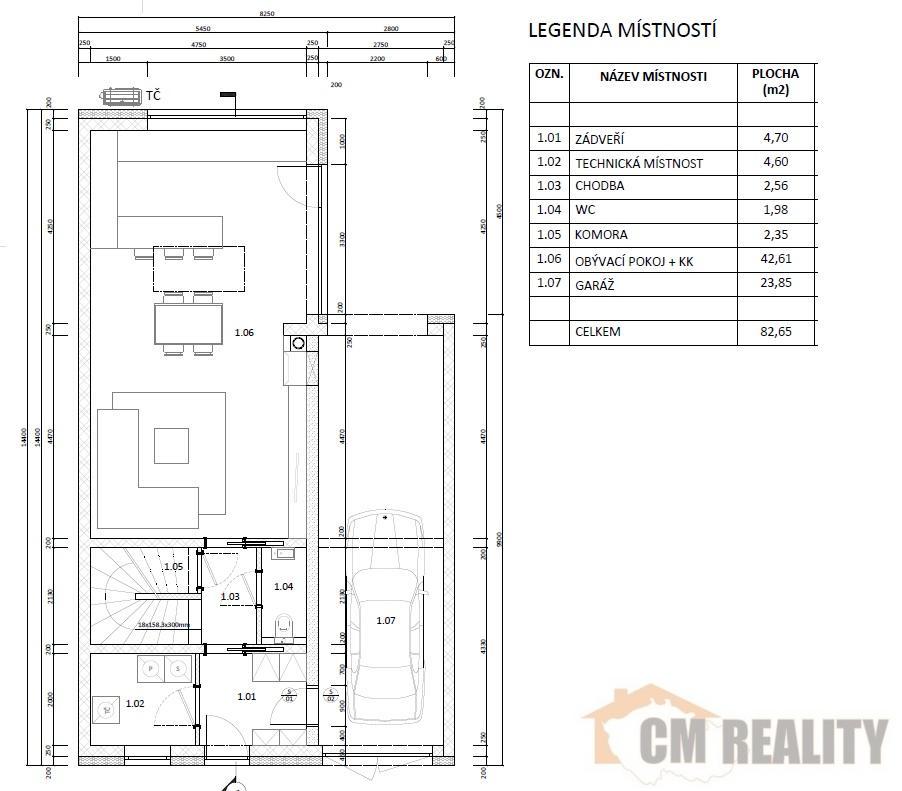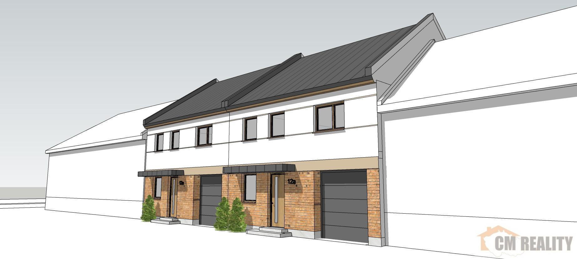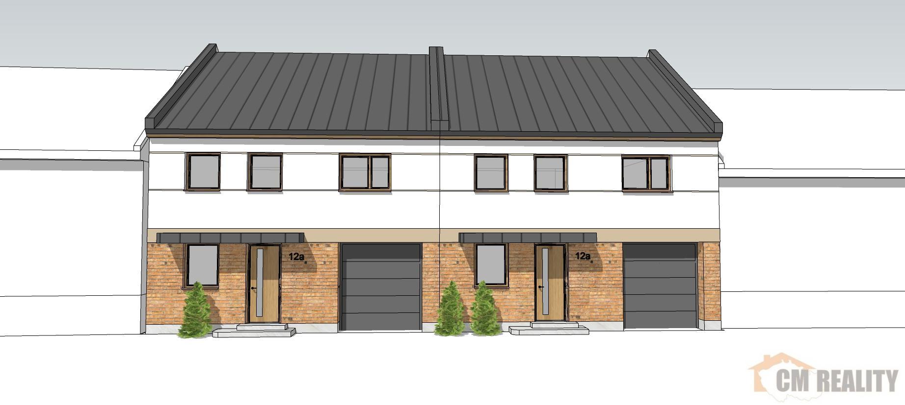 Nabízíme jedinečnou příležitost, a to stavební pozemek se základovou deskou a vydaným stavebním povolením. Po koupi tedy ihned můžete pokračovat ve stavbě svého vysněného bydlení. Při rychlém jednání máte možnost si vybrat, který dům Vám lépe vyhovuje, protože v nabídce jsou domy dva. Domy jsou koncipovány jako řadové s dispozicí 4+kk s garáží, která je uvažována jako průjezdná na uzavřený dvůr. Podlahová plocha domu vč. garáže činí 142 m2. Pozemky obou domů jsou téměř totožné, a to 834 a 855 m2.