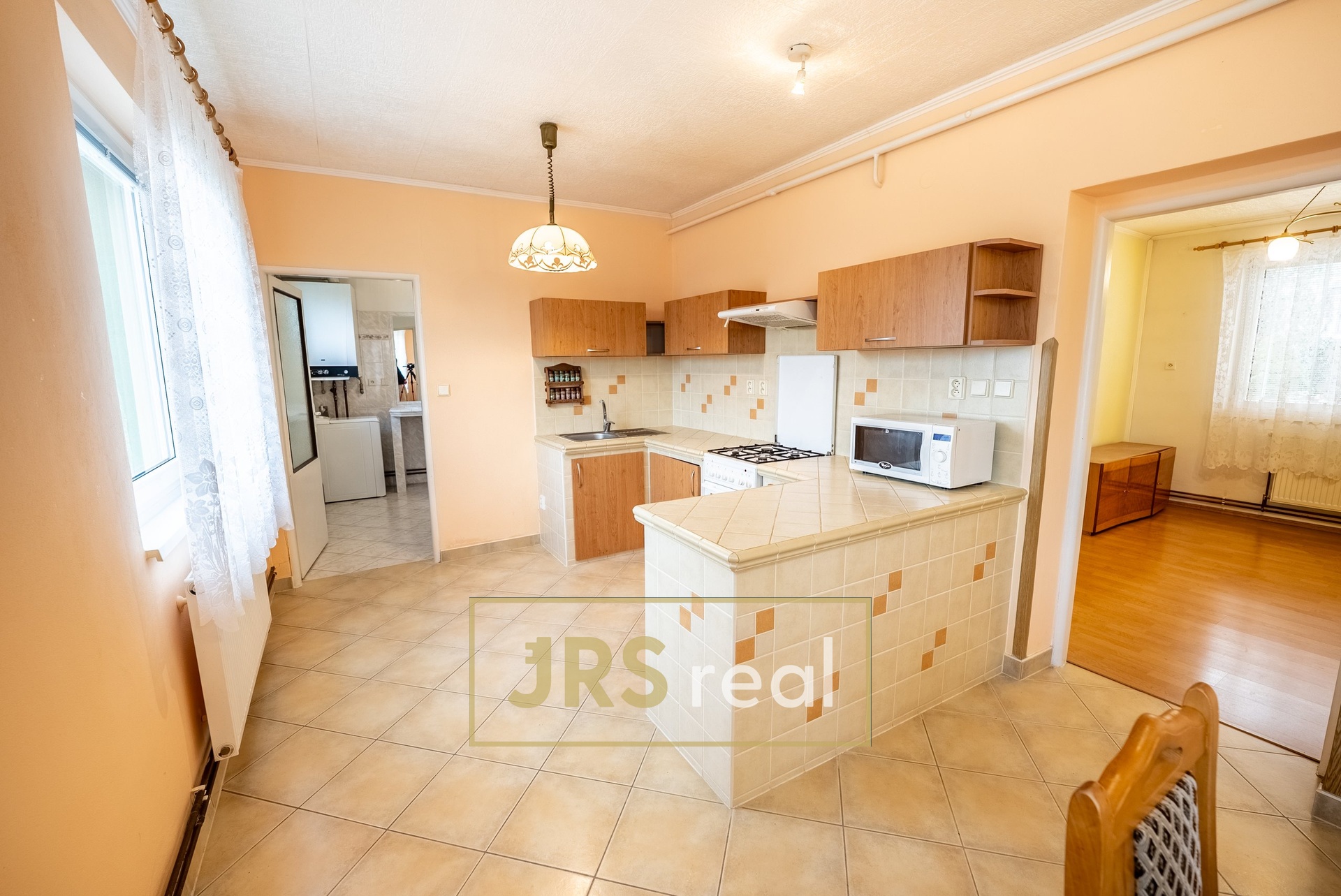 Z kuchyně je vstup do koupelny se sprchovým koutem a toaletou. Koupelna disponuje umyvadlem se zrcadlem a plynovým kotlem, který zajišťuje vytápění domu. Z jídelny se dále vstupuje do dvou průchozích pokojů, které mohou sloužit jako dětský pokoj nebo ložnice. Dispozice domu umožňuje flexibilní využití dle potřeb nové rodiny. Z hlavní chodby je pak přístup do obývacího pokoje, jenž nabízí příjemné místo pro odpočinek a rodinné večery. K domu náleží terasa, která přímo vybízí k posezení s přáteli nebo k relaxaci po náročném dni. Velkým benefitem je prostorná garáž a vlastní vinný sklep, který ocení nejen milovníci vína, ale i ti, kteří hledají další úložné prostory. Dům má sedlovou střechu, plastová okna a je napojen na veškeré inženýrské sítě – vodu, elektřinu, kanalizaci i plyn. Praktickým bonusem je vstup na půdu přes výklopný žebřík s možností dalšího uskladnění věcí. Tato nemovitost představuje skvělou příležitost pro rodinu, která hledá klidné bydlení s dostatkem prostoru, soukromí a potenciálu k vytvoření skutečného domova. V případě zájmu o více informací či sjednání prohlídky mě neváhejte kontaktovat.