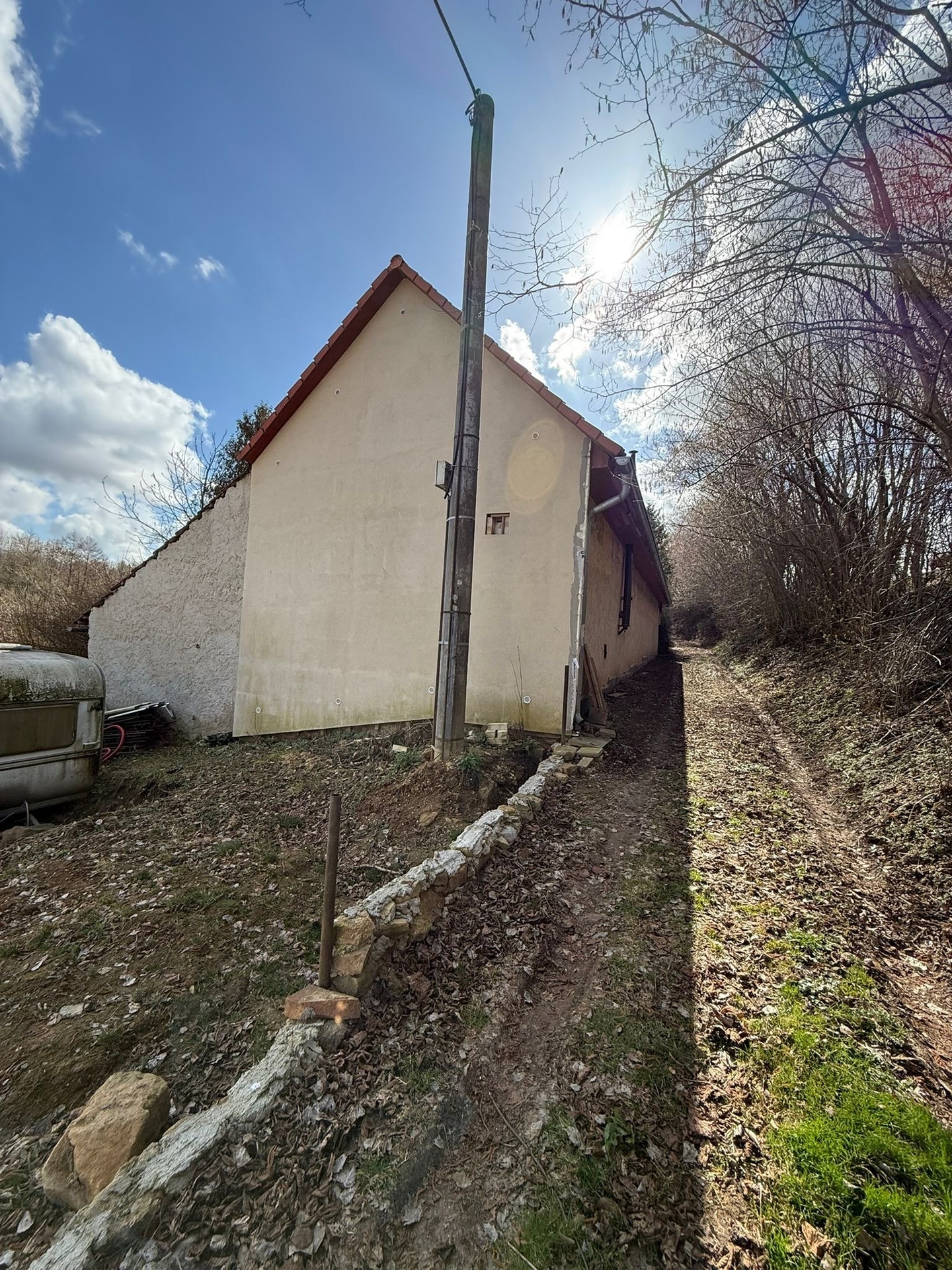 Majitel pozemek udržuje, terén srovnal a součástí prodeje je karavan, který může sloužit jako zázemí při stavbě vašeho bydlení.