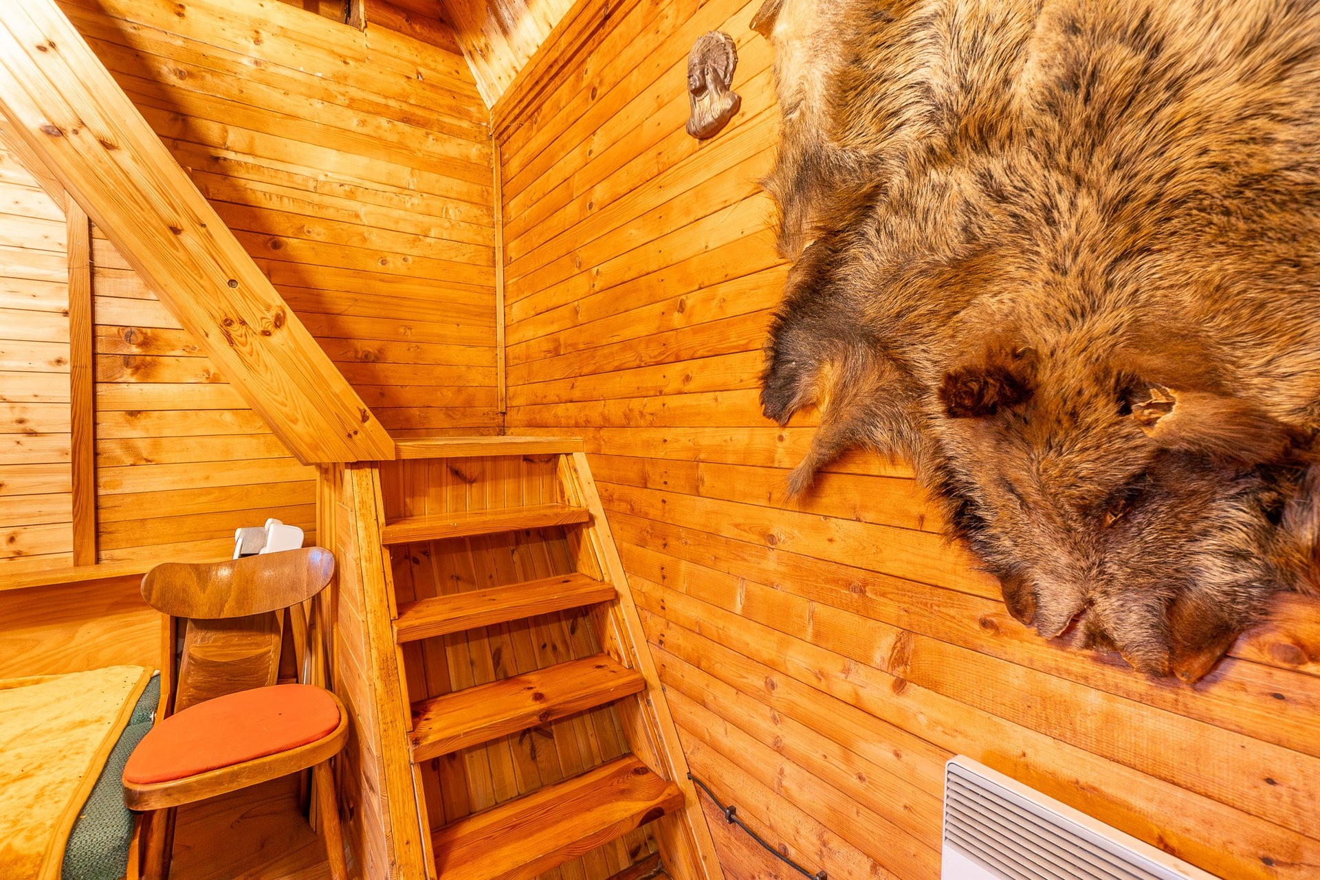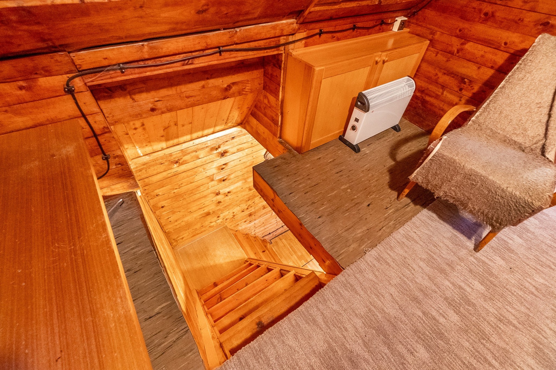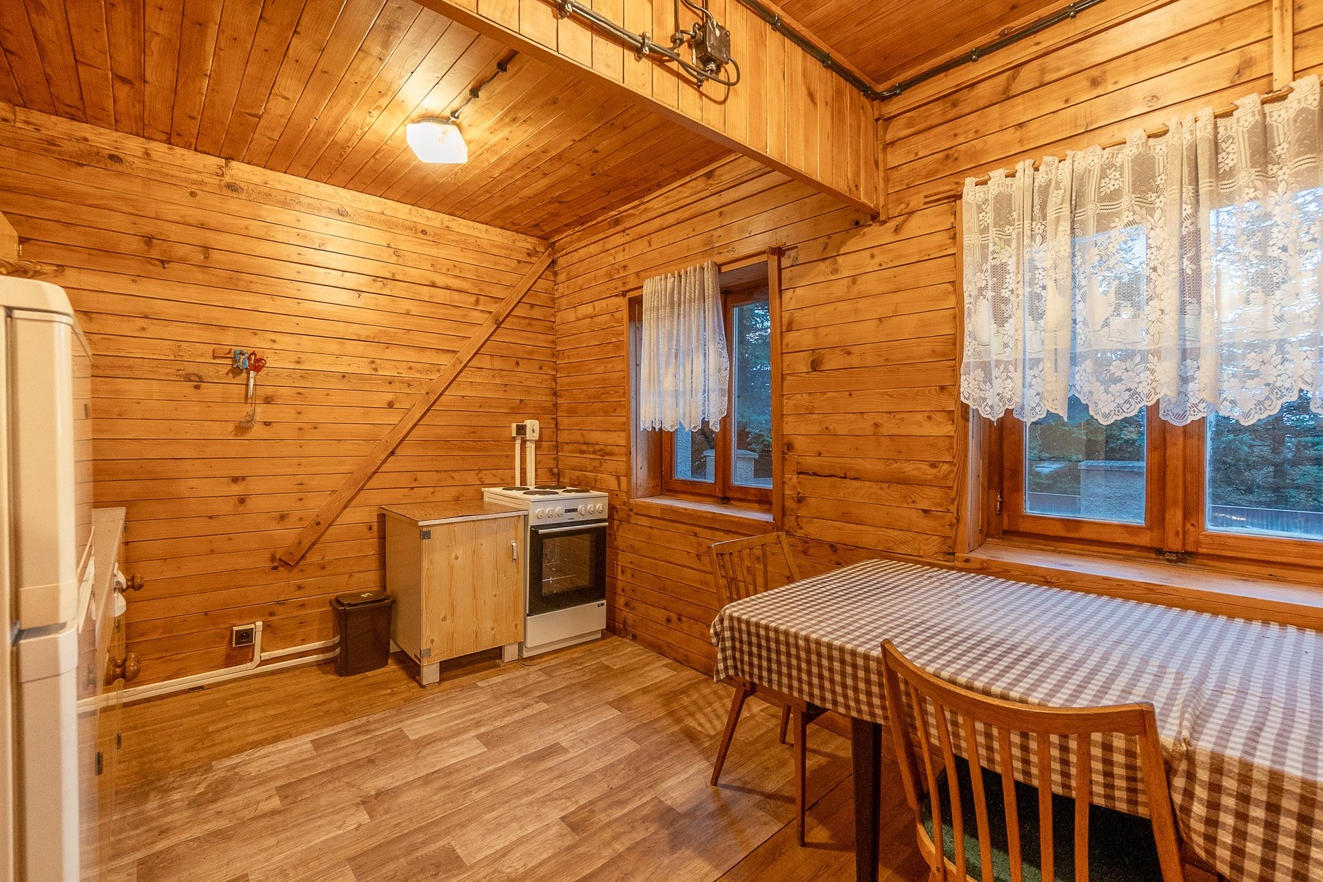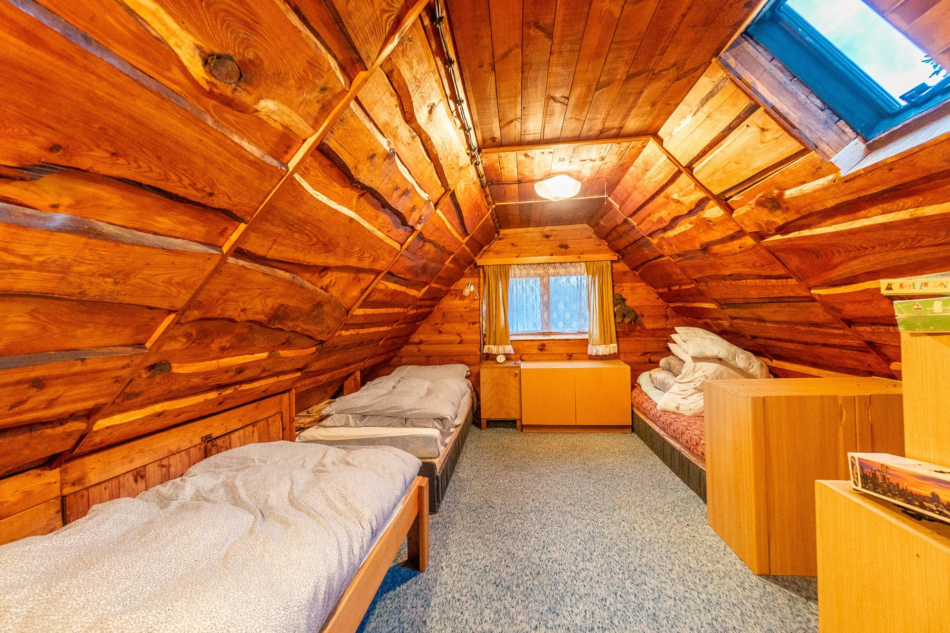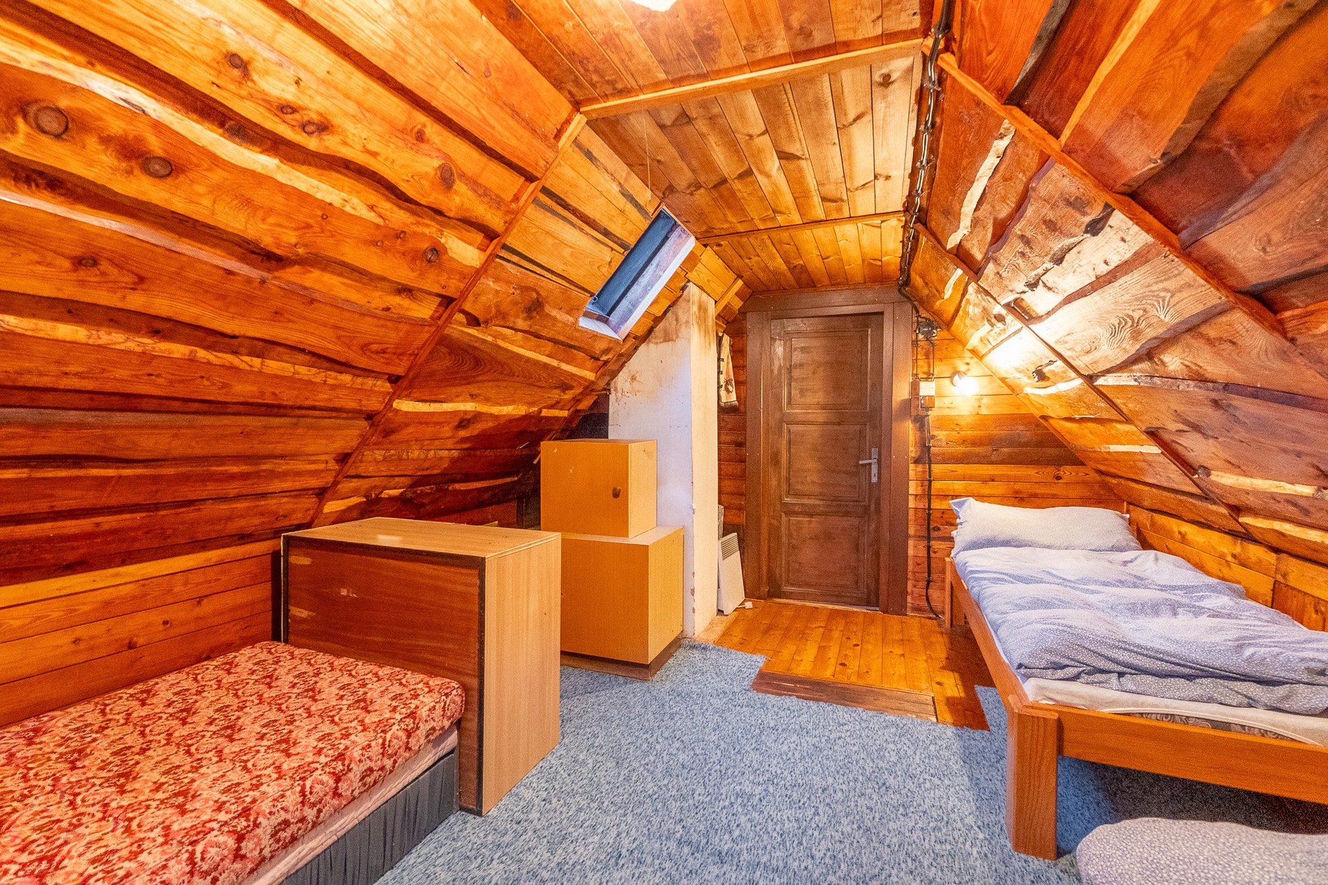 V podkroví jsou dvě útulné místnosti určené ke spaní, které poskytují příjemné zázemí pro rodinu nebo hosty.