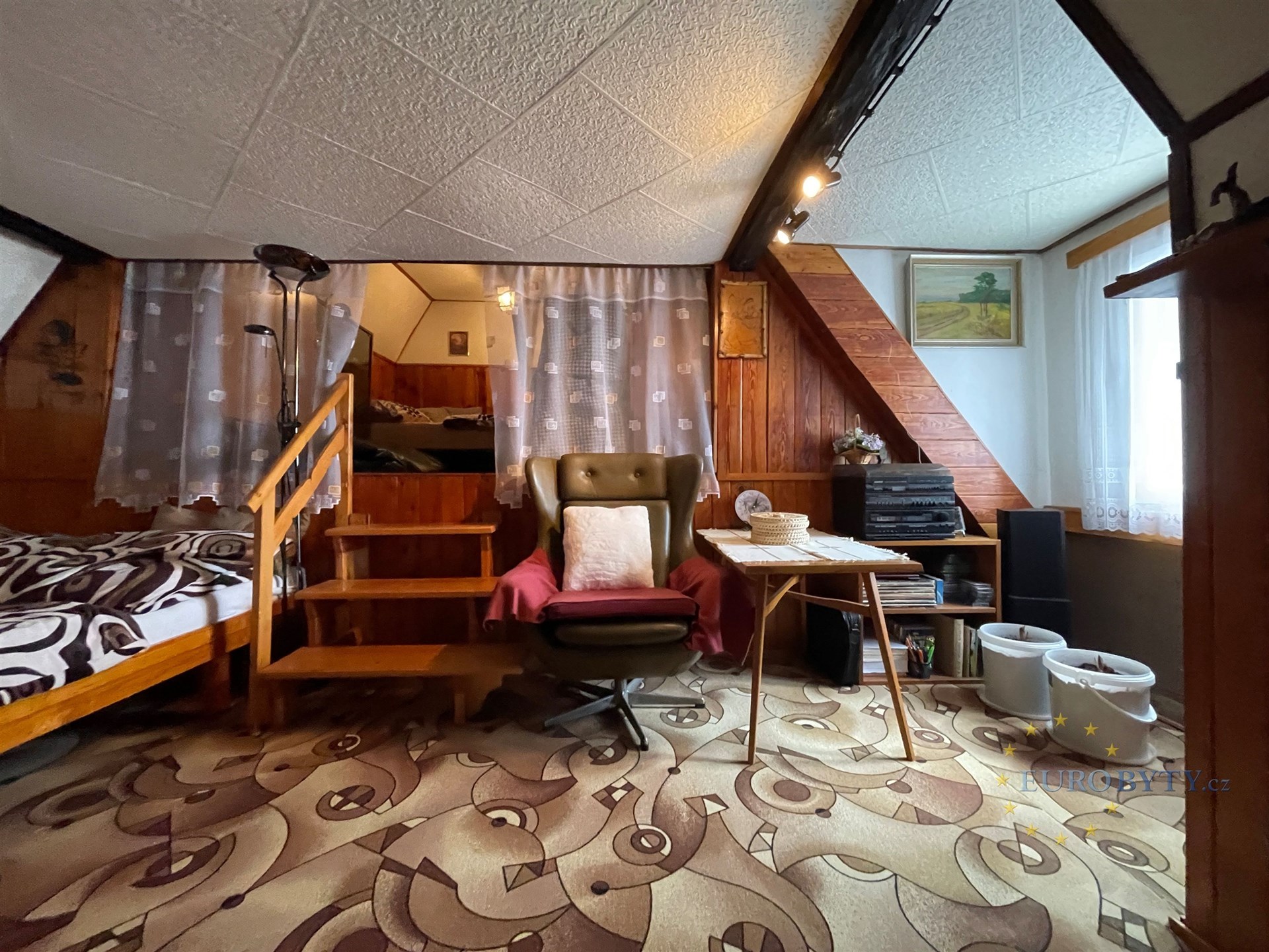 Dovolujeme si Vám Exkluzivně nabídnout krásný RD k prodeji v okrese Teplice obec Horní Krupka. Jde o starší velice dobře udržovaný rodinný dům jak k rekreaci tak k trvalému bydlení s číslem popisným. Dům se nachází na okraji obce v oblasti Krušných hor s komunikací přímo k pozemku. Dům je velice dobře dostupný i v zimních měsících. Nachází se v krásné části obce s nebráněným nádherným výhledem na celé Teplické údolí s jižní orientací. Dům je připojen na dvě studny kopaná 6m hloubky i vrtaná 30m hloubky s velmi dobrým zdrojem a jímkou 3m3. Střecha domu je opravená s ethernalovou krytinou. Pozemek je mírně svažitý s terasami o celkové velikosti 633m2 a zastavěnou plochou domu 129m2. Dům má parkovací stání na příjezdové cestě pozemku a druhé vedle silnice na vlastním odkoupeném pozemku. Přímo u domu je autobusová zastávka. Dům lze vytápět jak krbovými kamny tak i etážovým topením. Dům se prodává zařízený, vč. zařízené dílny, sklepa, koupelny s rohovou vanou, kuchyní a obývacím pokojem a ložnicemi. V přízemí domu se nachází wc, chodba, obývací pokoj, kuchyně, koupelna, dílna a sklep a v horním patře dvě ložnice z niž jedna je dvouúrovňová. Domek má nižší stropy cca kolem 2,3 m. Na domě nejsou žádná věcná břemena ani zástavní smlouvy a ihned k nastěhování. Zahrad je velice hezky udržovaná. Vedle domu je udělaná terasa kde byla umístěna vířivá vana. Dům je částečně izolovaný a není zateplen stěny jsou ovšem široké a teplo v domě se dobře udržuje při nákladech za elektřinu cca 3.800Kč při trvalém provozu. Komín je vyvložkovaný. 7 km daleko autem je možnost nákupu v Německu jinak veškerá infrastruktura je v Horní Krupce, nebo v Krupce případně v Teplicích 5 min autem. Jde o velice zajímavý objekt, který stojí za to. Nejsou nutné žádné vysoké investice. Neváhejte nás kontaktovat pro více info případně i prohlídku domu.