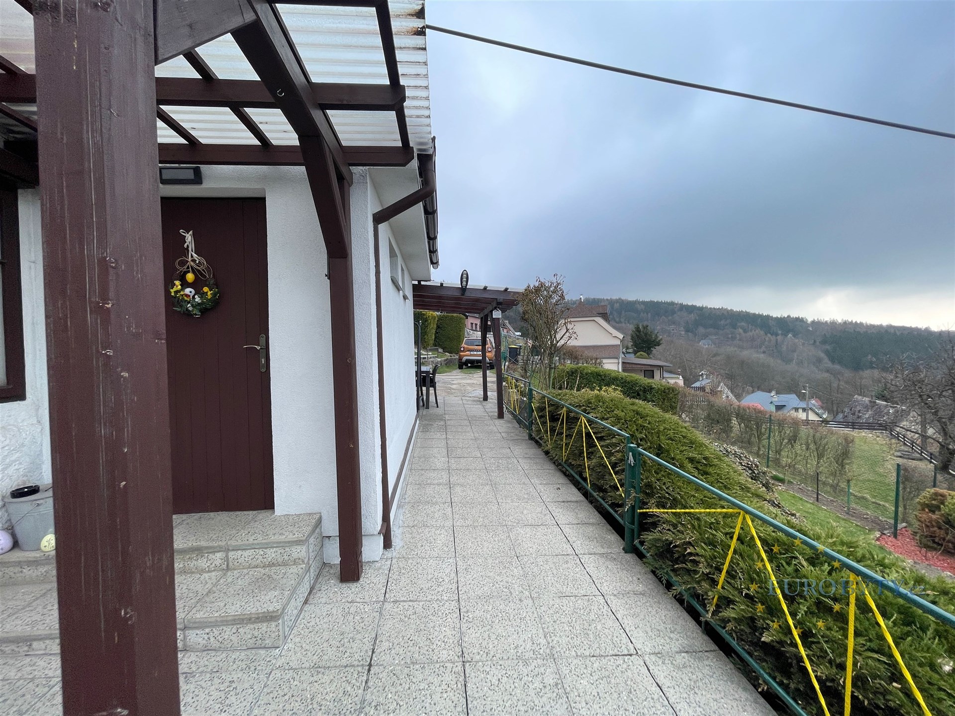 Dovolujeme si Vám Exkluzivně nabídnout krásný RD k prodeji v okrese Teplice obec Horní Krupka. Jde o starší velice dobře udržovaný rodinný dům jak k rekreaci tak k trvalému bydlení s číslem popisným. Dům se nachází na okraji obce v oblasti Krušných hor s komunikací přímo k pozemku. Dům je velice dobře dostupný i v zimních měsících. Nachází se v krásné části obce s nebráněným nádherným výhledem na celé Teplické údolí s jižní orientací. Dům je připojen na dvě studny kopaná 6m hloubky i vrtaná 30m hloubky s velmi dobrým zdrojem a jímkou 3m3. Střecha domu je opravená s ethernalovou krytinou. Pozemek je mírně svažitý s terasami o celkové velikosti 633m2 a zastavěnou plochou domu 129m2. Dům má parkovací stání na příjezdové cestě pozemku a druhé vedle silnice na vlastním odkoupeném pozemku. Přímo u domu je autobusová zastávka. Dům lze vytápět jak krbovými kamny tak i etážovým topením. Dům se prodává zařízený, vč. zařízené dílny, sklepa, koupelny s rohovou vanou, kuchyní a obývacím pokojem a ložnicemi. V přízemí domu se nachází wc, chodba, obývací pokoj, kuchyně, koupelna, dílna a sklep a v horním patře dvě ložnice z niž jedna je dvouúrovňová. Domek je postaven částečně z kamene a cihly, horní část a štíty jsou celé cihlové, dům má nižší stropy cca kolem 2,3 m. Na domě nejsou žádná věcná břemena ani zástavní smlouvy a ihned k nastěhování. Zahrad je velice hezky udržovaná. Vedle domu je udělaná terasa kde byla umístěna vířivá vana. Dům je částečně izolovaný a není zateplen stěny jsou ovšem široké a teplo v domě se dobře udržuje při nákladech za elektřinu cca 3.800Kč při trvalém provozu. Komín je vyvložkovaný. 7 km daleko autem je možnost nákupu v Německu jinak veškerá infrastruktura je v Horní Krupce, nebo v Krupce případně v Teplicích 5 min autem. Jde o velice zajímavý objekt, který stojí za to. Nejsou nutné žádné vysoké investice. Neváhejte nás kontaktovat pro více info případně i prohlídku domu.