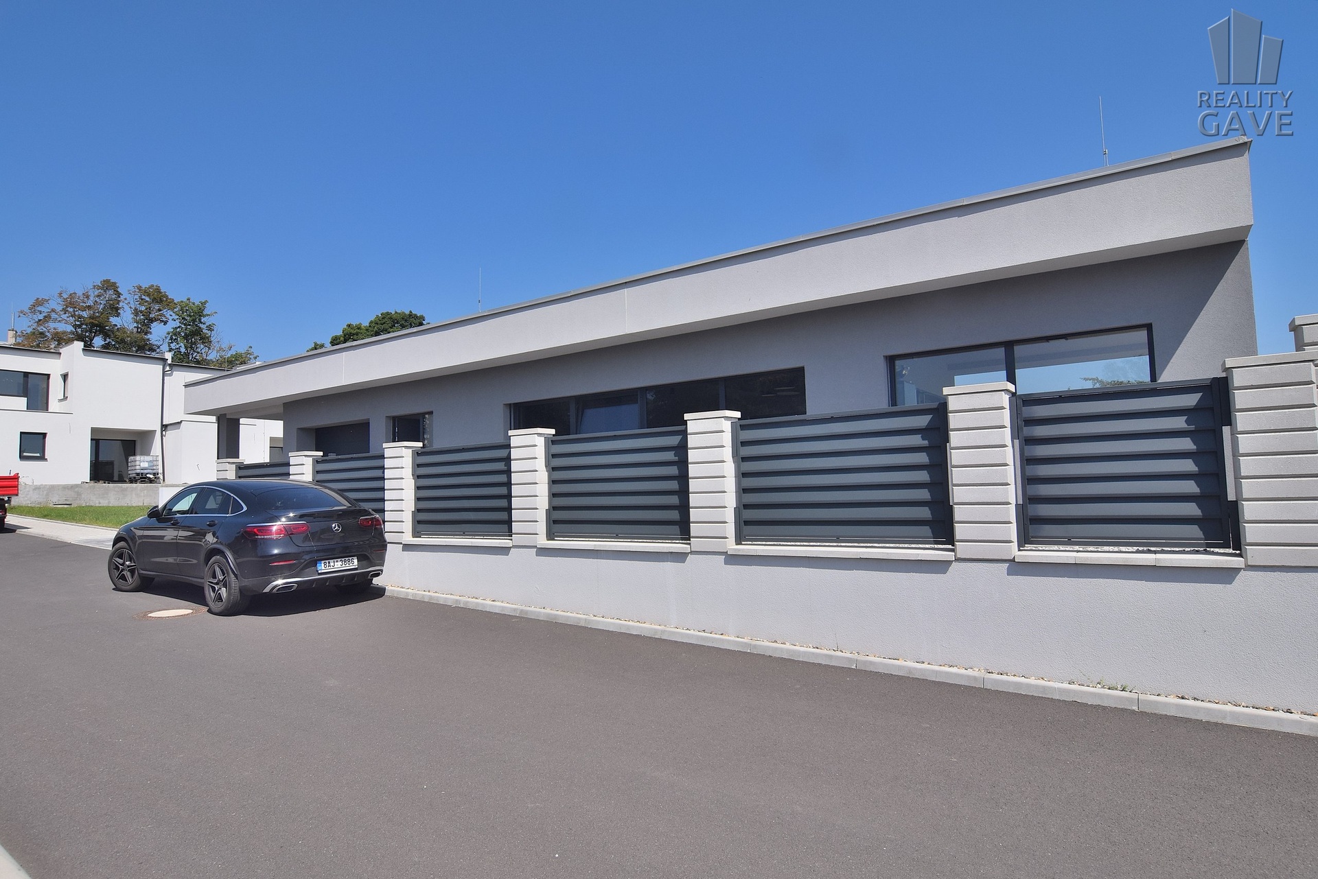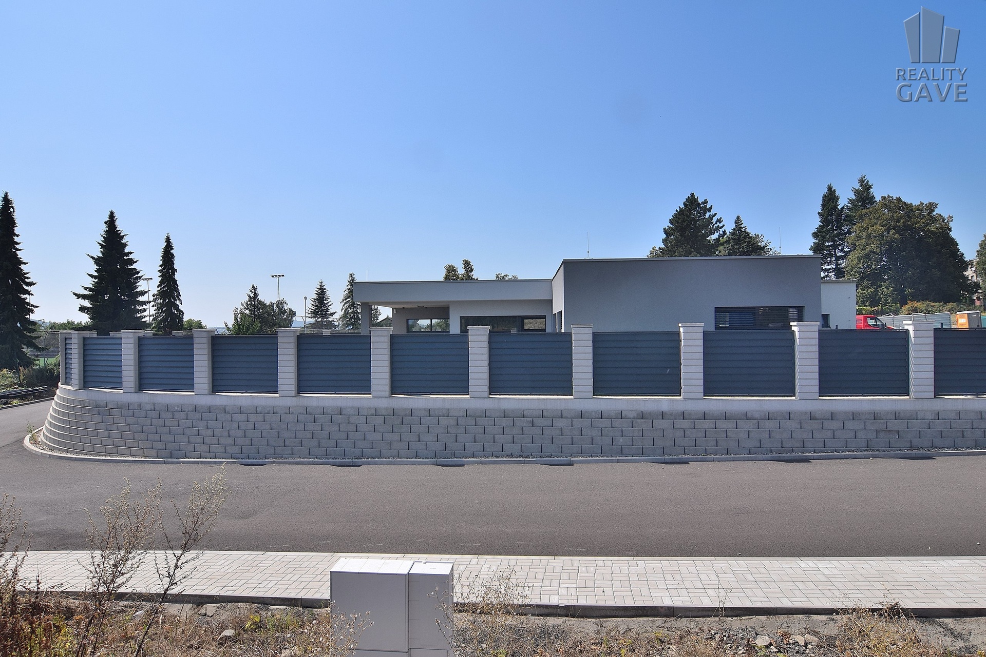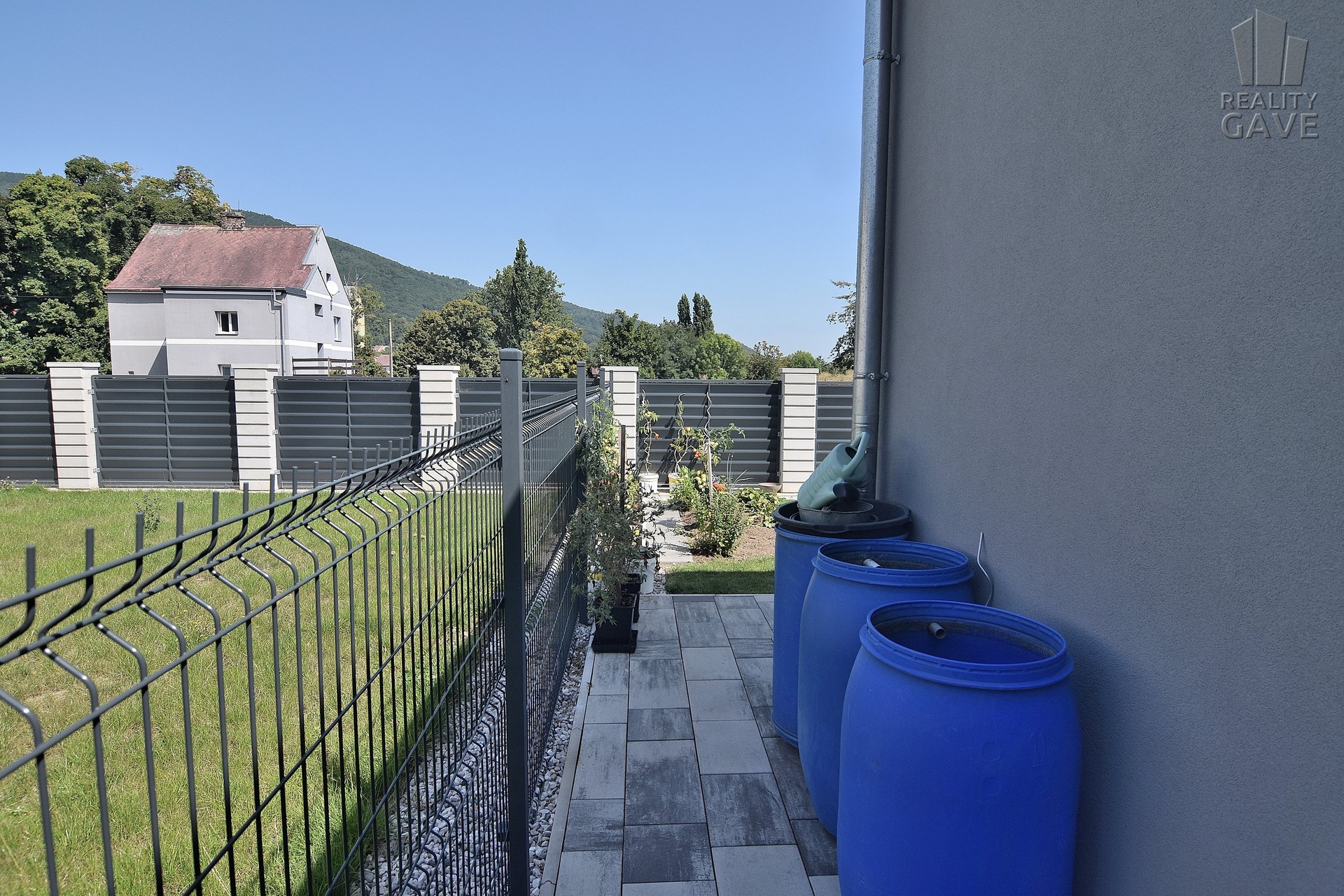 Celý pozemek je oplocen moderním designovým plotem, který zajišťuje maximální soukromí a opakovaně luxusní vzhled.