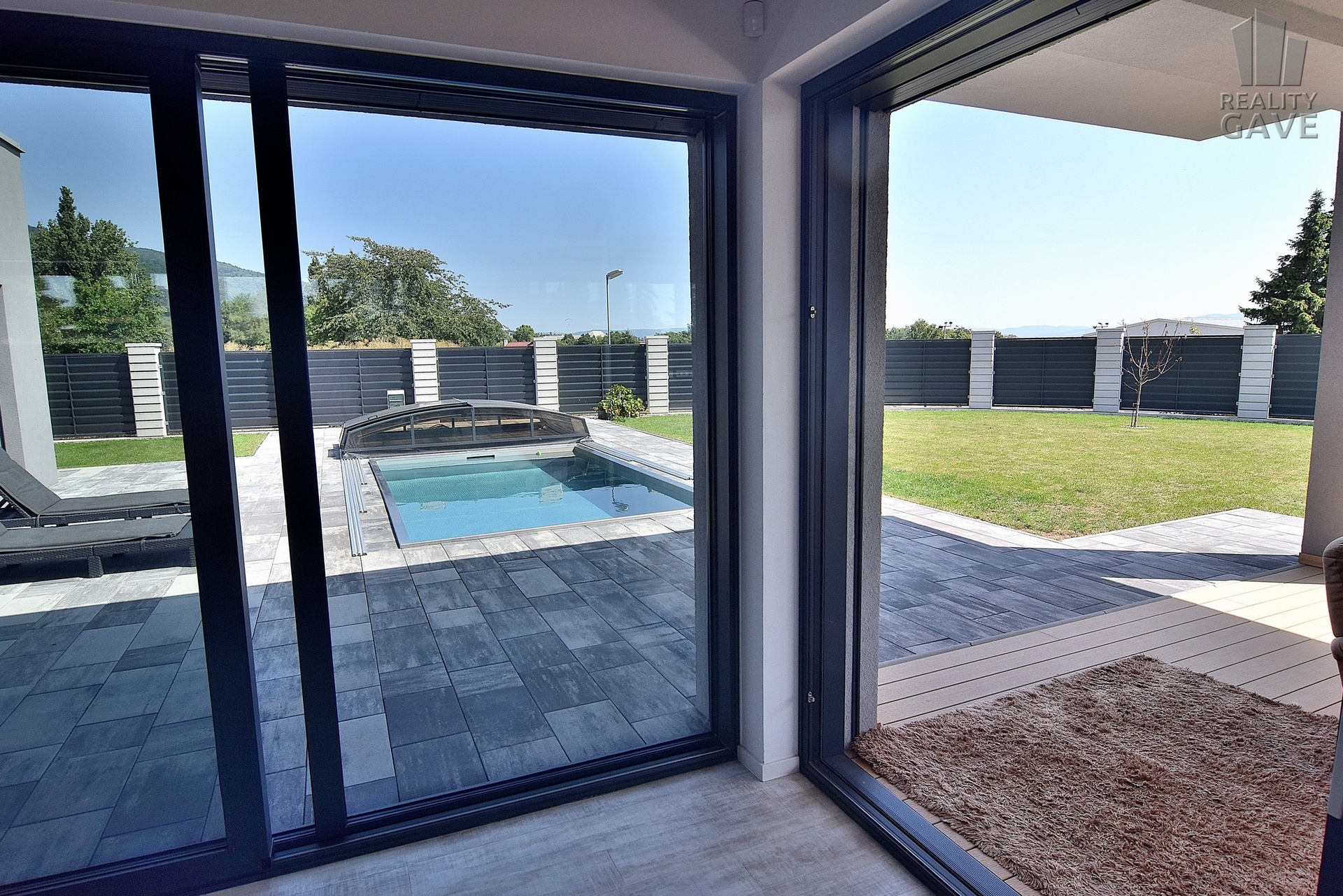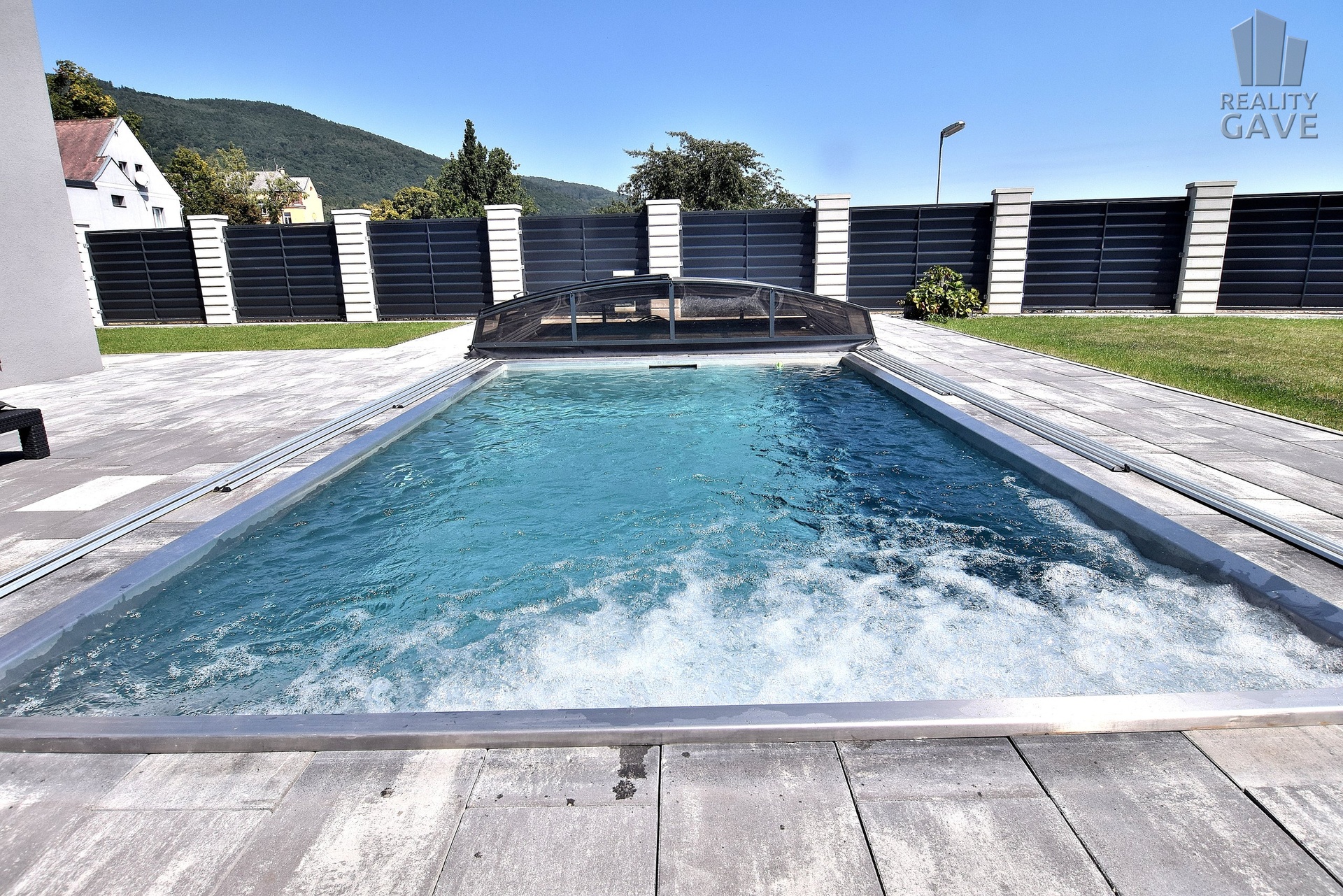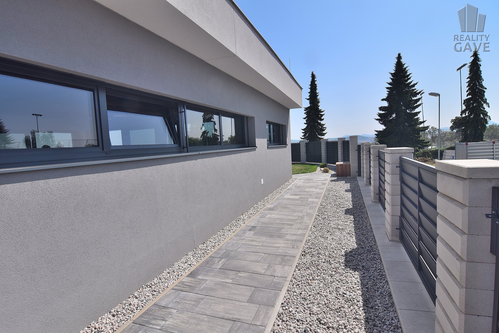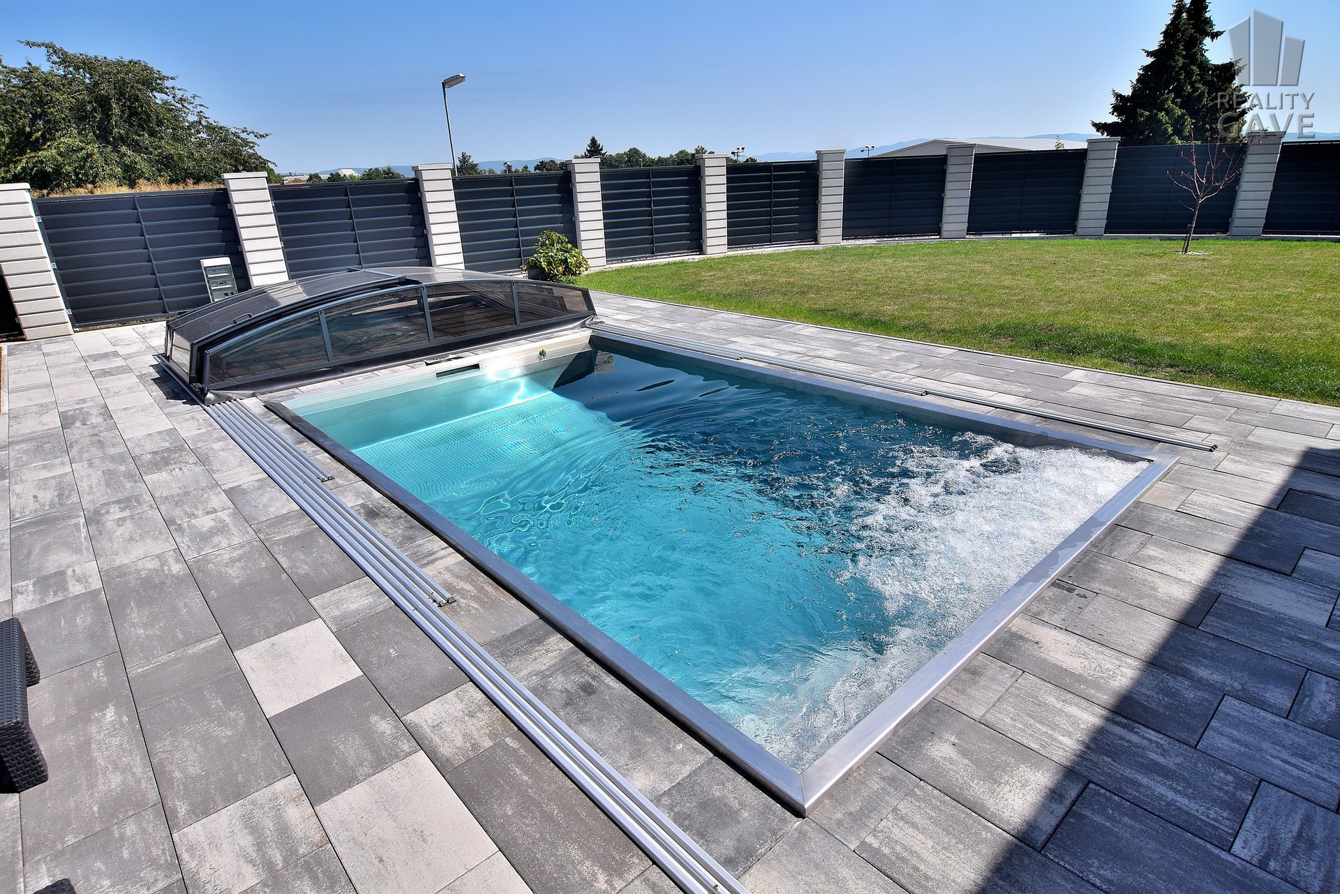 Celý pozemek je oplocen moderním designovým plotem, který zajišťuje maximální soukromí a opakovaně luxusní vzhled.