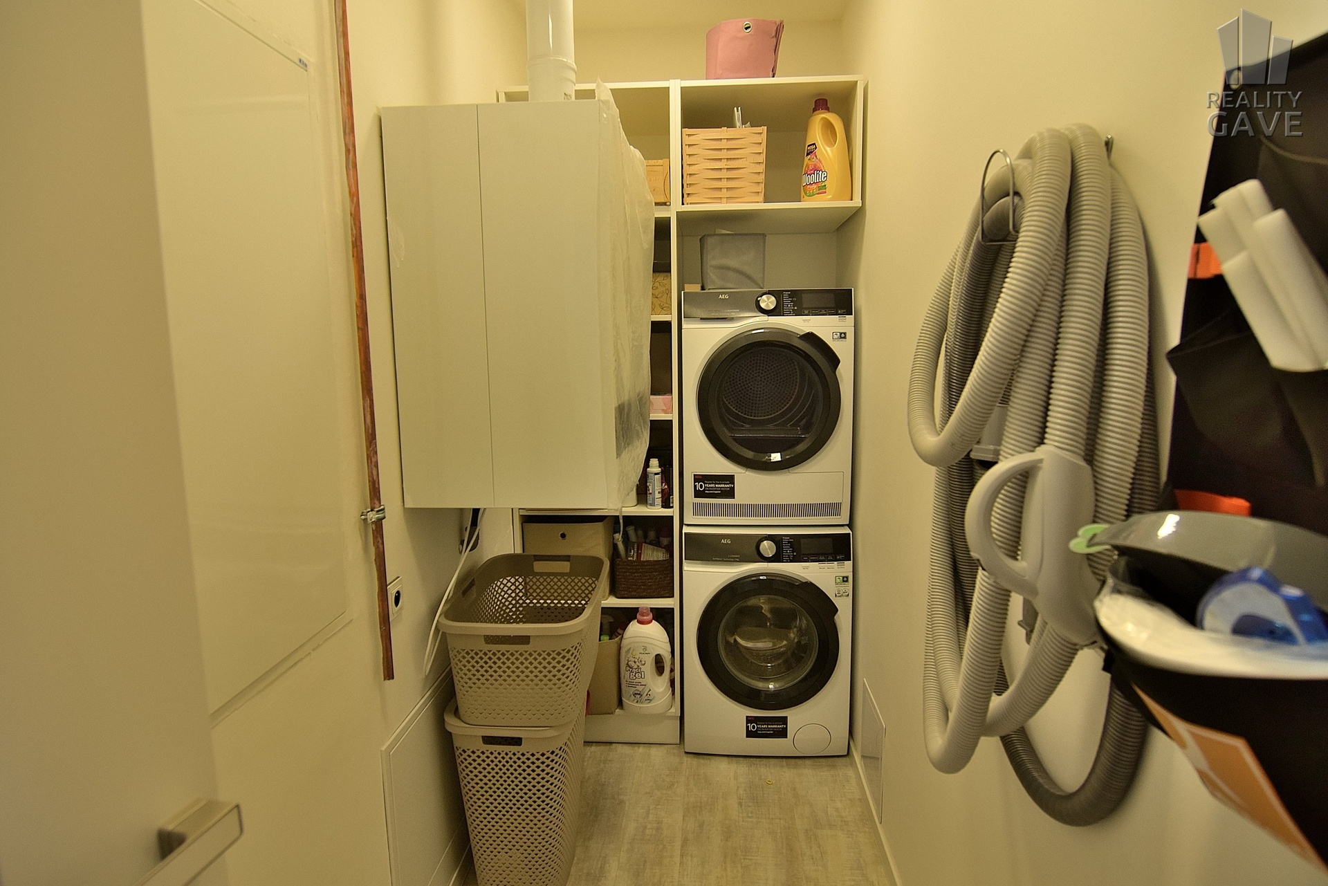 Praktická technická místnost nabízí prostor pro pračku, sušičku i technologie domu jako např. centrální vysavač.