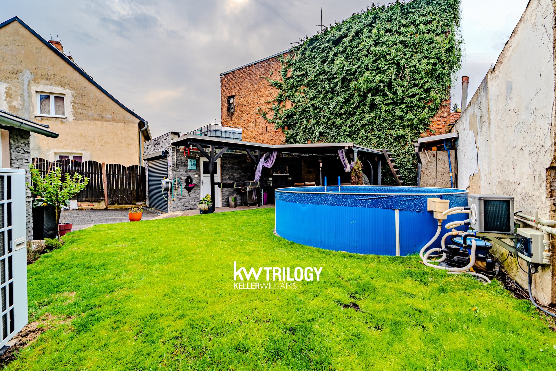 Na pozemku se nachází samostatná garáž, zastřešené venkovní posezení, bazén. Přestože se dům nachází téměř v centru obce, nabízí velký klid a soukromí. Neprůjezdná ulice zajišťuje bezpečné prostředí i pro rodiny s dětmi.