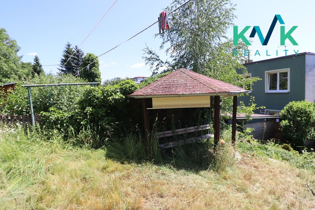 Před domem jsou dvě parkovací místa na vlastním pozemku. Za domem se nachází neudržovaná zahrada se skleníkem, dřevěným altánem a venkovní bazénem.