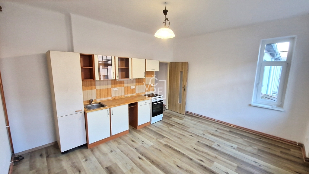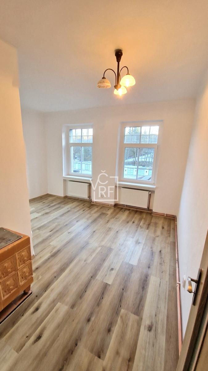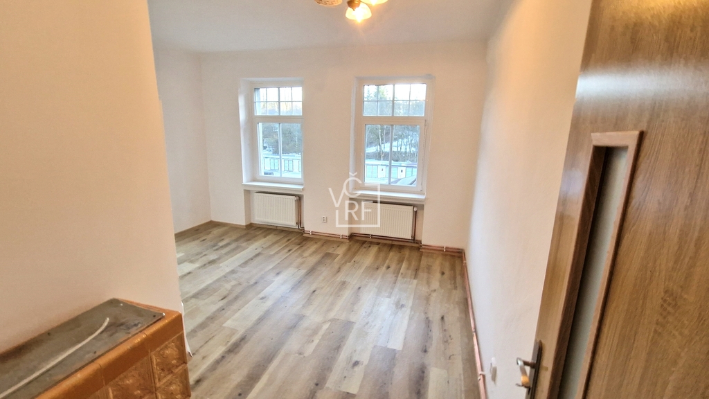 Prodej samostatné bytové jednotky s dispozicí 2+1, v osobním vlastnictví, umístěné ve druhém nadzemním podlaží zděného domu v obci Kunčice nad Labem vzdálené 3 km od Vrchlabí. Výměra bytu je 45,3 m2. K jednotce dále náleží velký sklep o výměře 10 m2. Dispozice: chodba, pokoj s kuchyňským koutem, pokoj, koupelna s WC, umývadlem, a sprchovým koutem. Bytová jednotka rekonstruována v r. 2024. V bytě jsou instalována plastová okna s izolačními trojskly, kompletně nové rozvody. Ústřední vytápění tepelným čerpadlem s vlastním měřením. Součástí prodeje je i jedno parkovací stání na pozemku u domu. V roce 2026 bude provedena oprava a nátěry fasády domu a dále rekultivována zahrada u domu. Veškerá infrastruktura města v dosahu několika minut ve 3 km vzdáleném Vrchlabí, Automobilka Škoda ve vzdálenosti 2,5 km od domu. Přímo před domem je autobusová zastávka, v domě pobočka České pošty.
