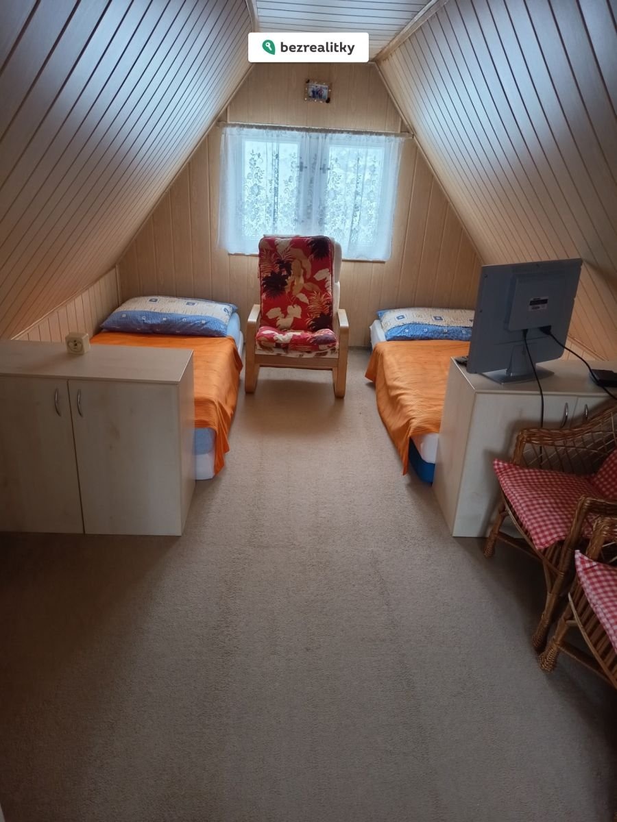 Chata je napojena na elektrický proud, podsklepená a sklep je chytře využíván jako letní kuchyně – ideální pro horké dny i posezení s přáteli. Samozřejmostí je WC a vana, takže pohodlí máte i mimo civilizaci.