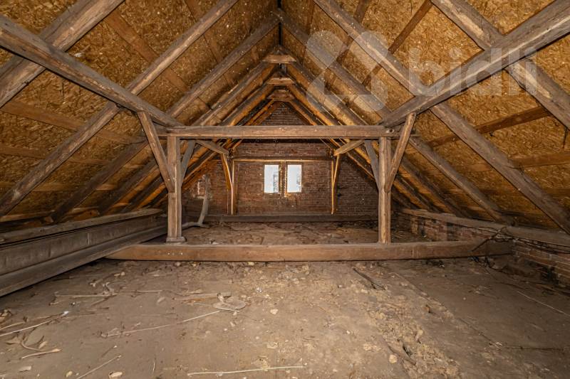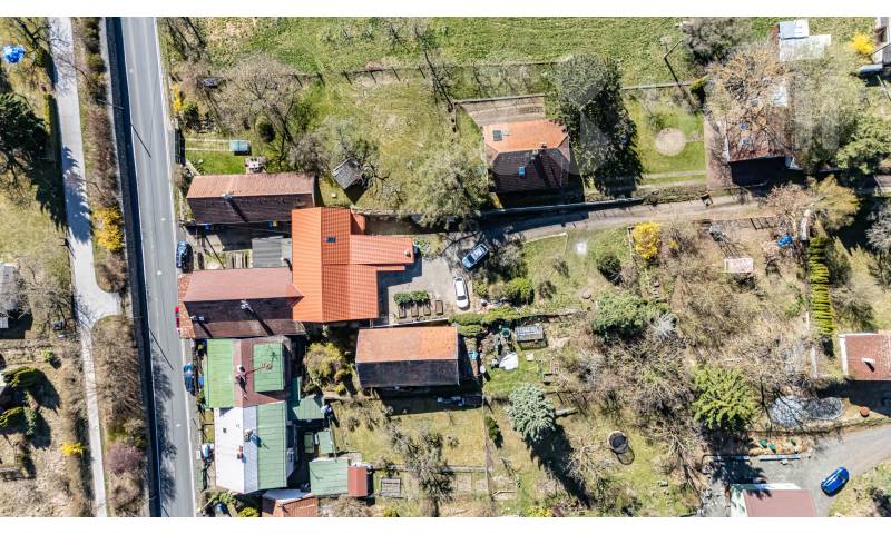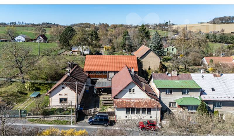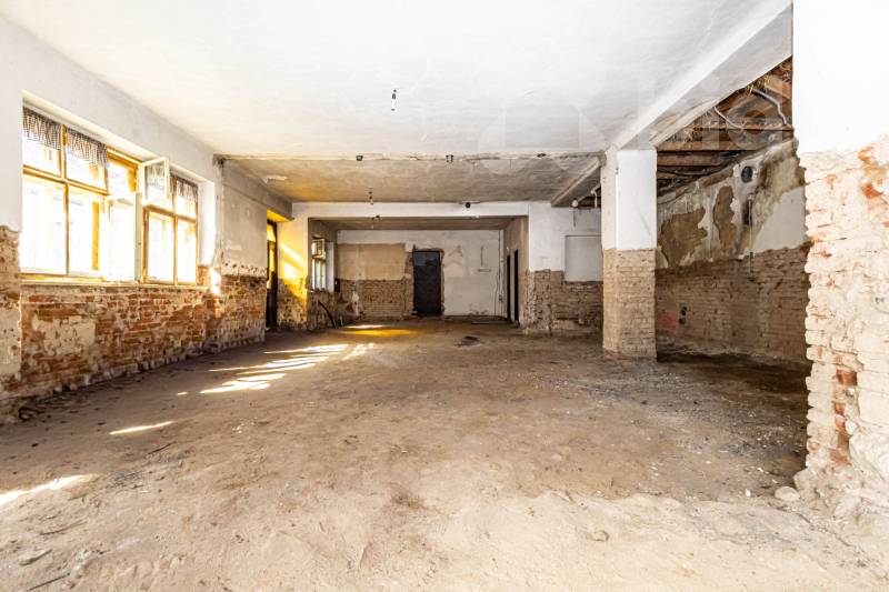 Druhá stavba, dříve využívaná jako restaurace, se nachází u hlavní komunikace a je určena ke kompletní rekostrukci. Objekt nabízí široké možnosti využití - např. pro podnikání, kanceláře, služby, pronájem nebo přestavbu na další bytovou jednotku. Velkou výhodou je také možnost využití podkroví, které lze upravit na další obytný prostor. Střecha byla realizována před cca 15 lety, avšak menší část střechy vyžaduje opravu.