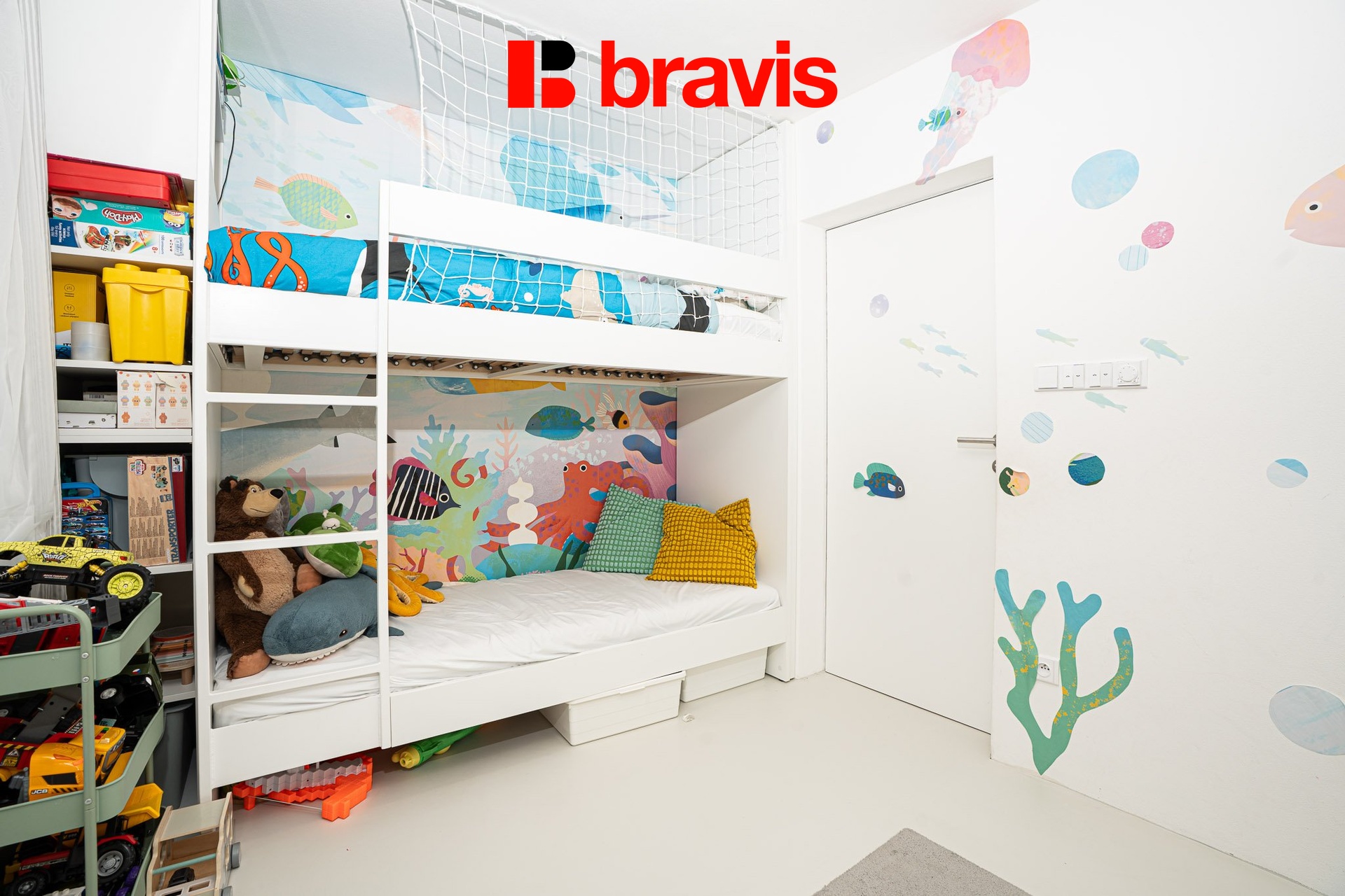 • Dětský pokoj (9,15 m²) - s nábytkem na míru – dvě postele, pracovní stoly i úložné prostory.