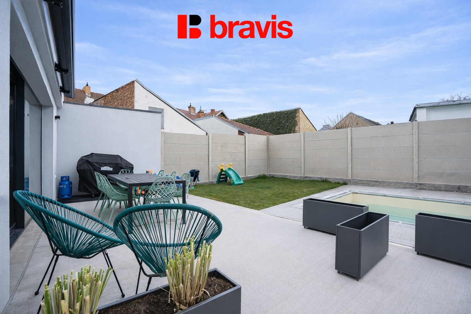 Tento byt představuje ideální kombinaci komfortního bydlení, moderních technologií a výborné dostupnosti do Brna. Najdete zde vše, co od současného moderního bydlení očekáváte – dostatek prostoru, promyšlenou dispozici nabízející dostatek soukromí, nízké provozní náklady a příjemné zázemí v podobě zahrady s terasou a vyhřívaným bazénem. Benefitem je možnost parkování pro 2 auta na pozemku.