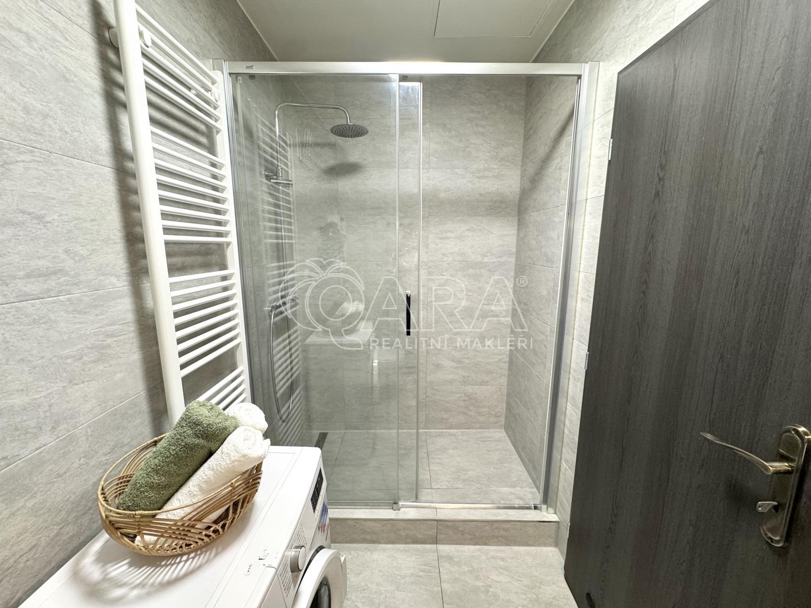 Jednotka nabízí pohodlnou předsíň, velkou koupelnu s moderním walk-in sprchovým koutem a obytnou místnost s vestavěnou skříní. Vysoké stropy dodávají interiéru vzdušnost a příjemnou atmosféru. Okna směřují do klidného vnitrobloku, takže si užijete dostatek soukromí i ticha. Samozřejmostí je bezbariérový přístup. V domě je navíc instalován kamerový systém pro větší bezpečí.