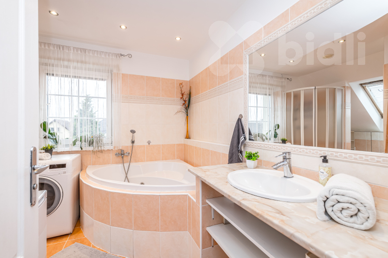 Celková podlahová plocha domu je 194 m2. Dům má dvě samostatné bytové jednotky, každá s vlastním vstupem, koupelnou a toaletou. Jedna koupelna je vybavena sprchovým koutem, druhá rohovou vanou a taktéž sprchovým koutem. Dispozičně je nemovitost velmi praktická a umožňuje pohodlné soužití dvou domácností bez omezení soukromí.
