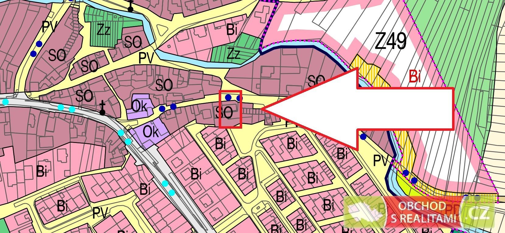Dle územního plánu se nemovitost nachází v území SO (Bydlení smíšené obytné), jedná se o plochy polyfunkční, tedy pro bydlení, dále např. pro občanské vybavení nebo podnikatelské aktivity. Náhled na územní plán jsme opět umístili do fotodokumentace této inzerce.