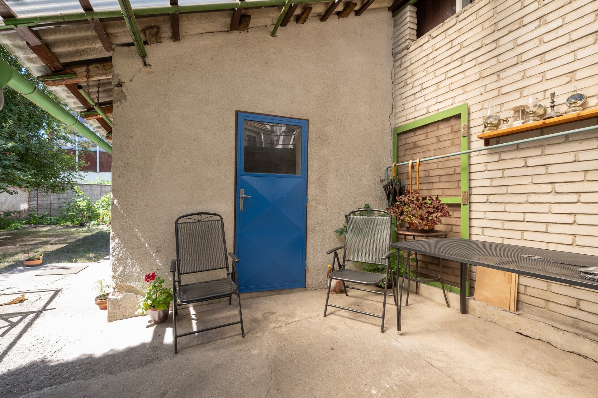 K domu patří zahrada, jejíž součástí je hospodářské stavení (skladové prostory) s přístřeškem.