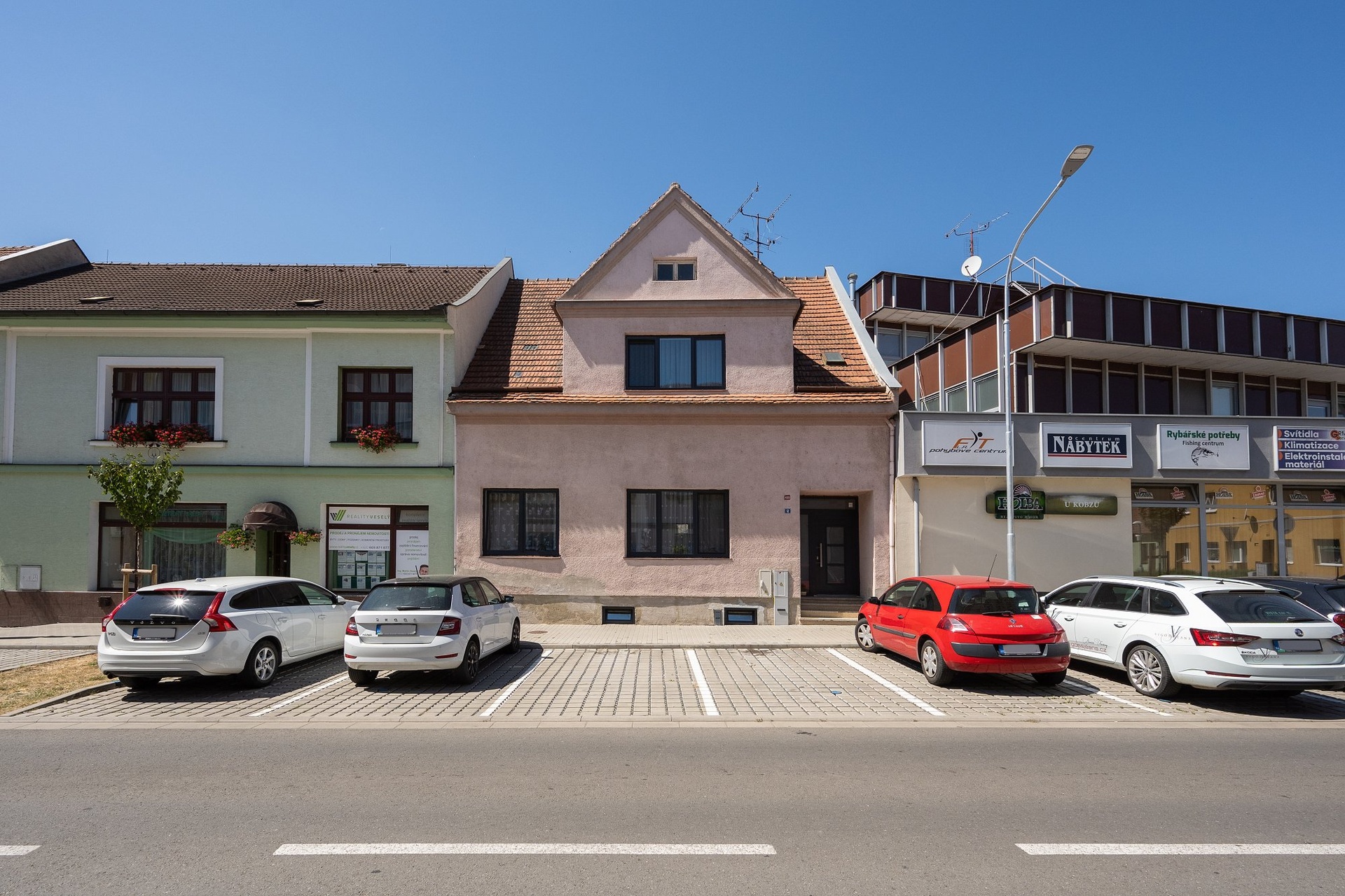 Řadový cihlový dům stojí na vlastním pozemku v sousedství dalšího rodinného domu a polyfunkční stavby občanské vybavenosti (banka, obchodní a administrativní prostory).