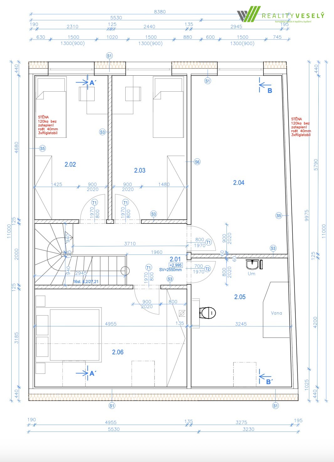 • 2 koupelny s WC