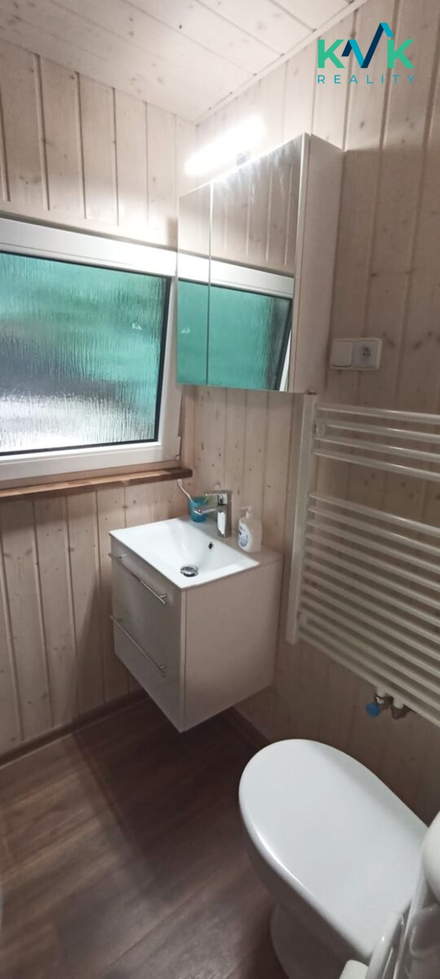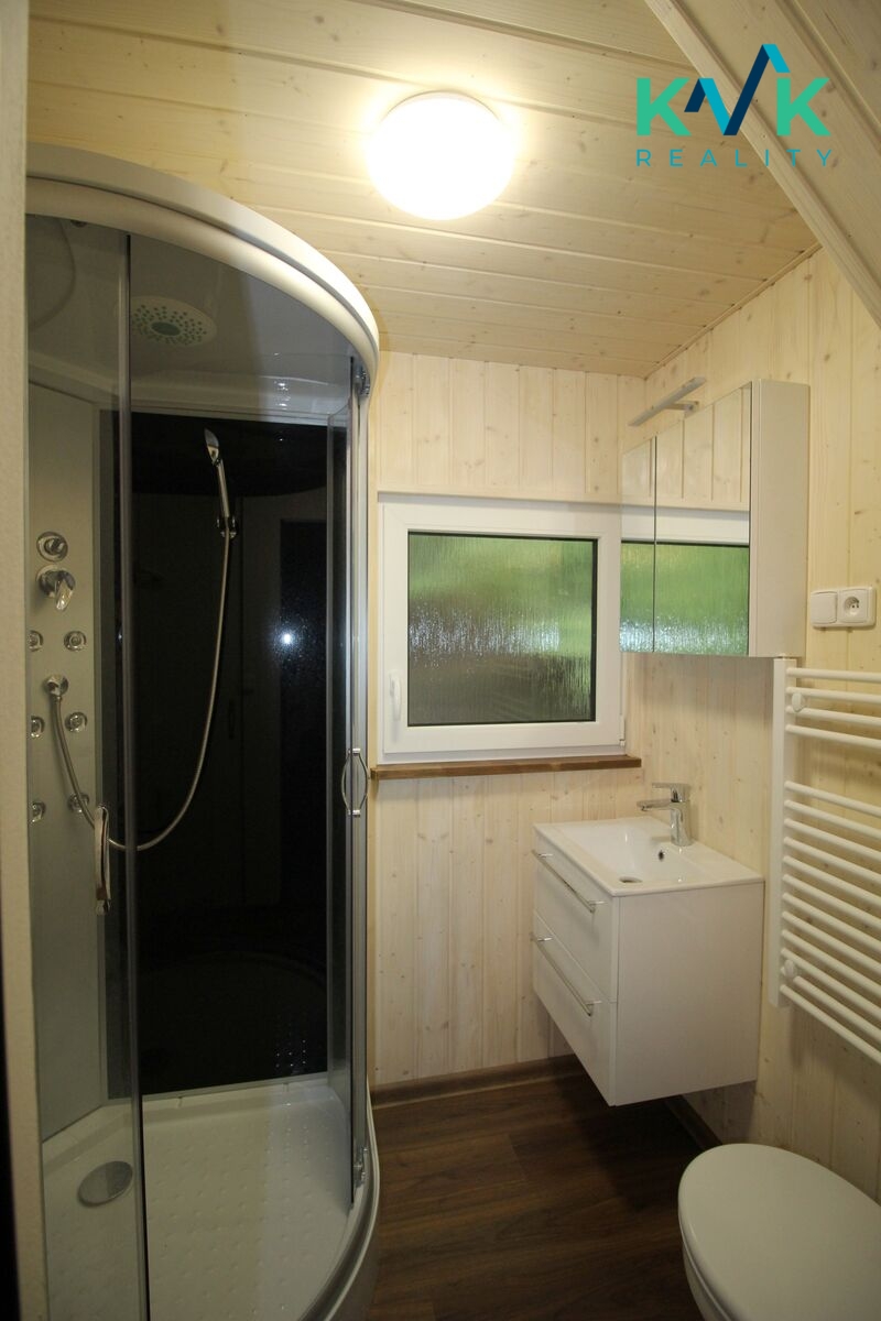 V Radošově, části obce Kyselka vám nabízíme k prodeji samostatně stojící chatu v osobním vlastnictví, která se nachází v klidné chatařské osadě s výbornou dostupností do okolní přírody. Tato cihlová chata má dvě patra, sklep a půdu. Byla postavena v roce 1987 a rekonstrukcí prošla v roce 2023 (elektroinstalace, odpady, vodovodní rozvody, otopný systém, výměna oken), což zajišťuje komfortní celoroční rekreaci či bydlení. Zastavěná plocha činí 51 m2, celková užitná plocha chaty činí 80 m2, přičemž přízemí nabízí 45 m2 obytné plochy. Do chaty vcházíme přes nově přistavenou předsíň, která navazuje na chodbičku a toaletu. V přízemí se nachází kuchyň, jídelní kout a prostorná společenská místnost s dominantním krbem, ze které je vstup na krásnou terasu. Pohodlně se po schodech přesuneme do podkroví, kde je jedna velká ložnice s výstupem na balkon. Dále se zde nachází nově vybudovaná útulná koupelna se sprchovým koutem, umyvadlem a toaletou (zde je příprava na pračku). Na chodbě a půdě jsou úložné prostory. Chata je podsklepena, kde poskytuje dalších 12 m2 dílenského prostoru, ideálního pro kutily nebo jako úložný prostor. Majitel nechal vybudovat nový ekologický kotel na tuhá paliva a elektrický kotel BOSH 9.9kW (možné ovládat dálkově SMS), jenž zajišťují vytápění a ohřev vody. Kombinovaný stacionární bojler je na 160 l. Na pozemku je nově vybudován vrt, který poskytuje dostatek kvalitní vody. Odpad je řešen prostřednictvím troj komorové jímky, což je běžné pro tuto oblast. Nemovitost se nachází na pozemku o rozloze 321 m2, z čehož 270 m2 tvoří udržovaná zahrada, ideální pro relaxaci i zahradničení. Dopravní dostupnost je zajištěna autobusovou dopravou, která usnadňuje spojení s okolními obcemi a městy. Pokud hledáte útulné místo k odpočinku nebo trvalému bydlení v klidném prostředí s dostupností služeb, tato nemovitost je pro vás ideální volbou.