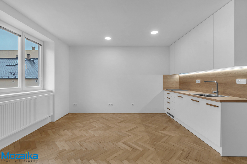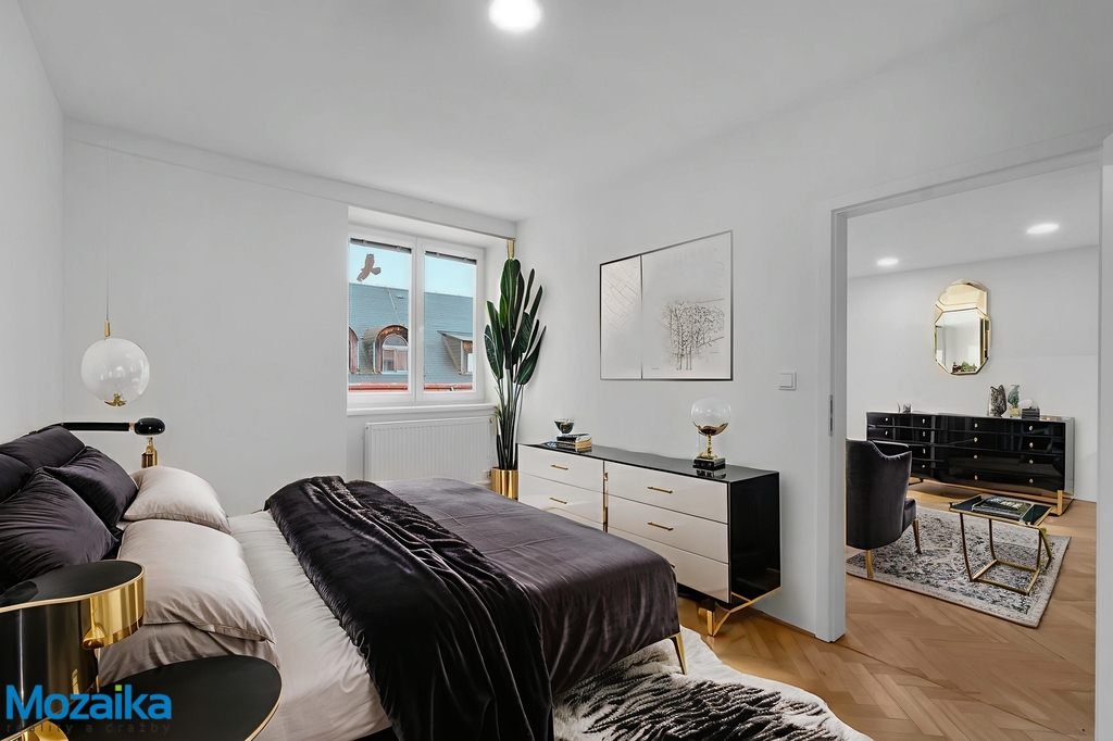 Celý byt prošel kompletní zdařilou rekonstrukcí v moderním stylu. Na podlahách se střídají krásné zachovalé parkety s velkoformátovou dlažbou, která dodává prostorům luxusní vzhled. Každý detail byl pečlivě promyšlen tak, aby vám bydlení přinášelo maximální komfort a radost. K bytu náleží také praktická sklepní kóje v suterénu domu a bonusem je možnost využívání společného dvorku za domem, což je v centru města skutečnou vzácností.