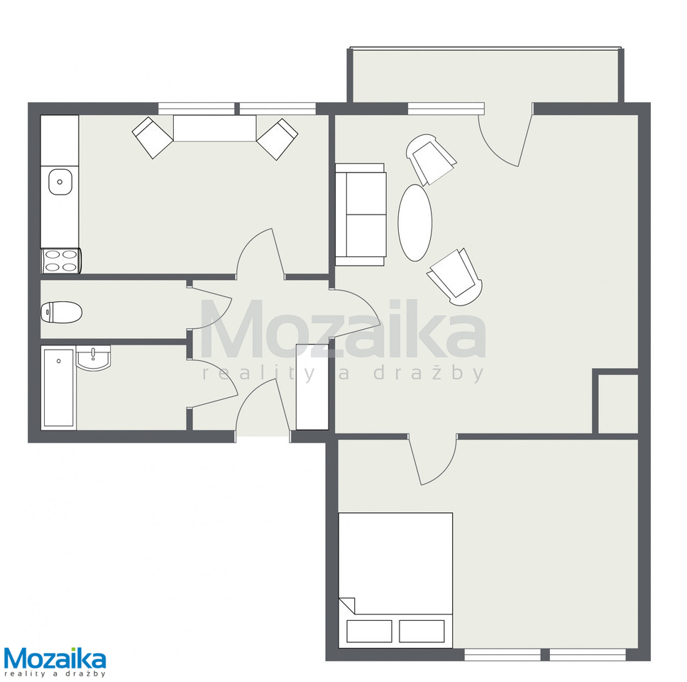 Celková užitná plocha bytu činí 69 m², přičemž prostory jsou rozvrženy velmi prakticky a funkčně. Po vstupu do bytu vás přivítá prostorná chodba o velikosti 4,40 m² s vestavnou skříní, která nabízí dostatek úložného prostoru pro každodenní potřeby. Samostatné WC o ploše 1,30 m² a koupelna s vanou a umyvadlem o ploše 3,20 m² zajišťují pohodlné hygienické zázemí. Kuchyně o výměře 10,26 m² je vybavena kuchyňskou linkou se sporákem, takže je připravena k okamžitému užívání. Srdcem bytu je pak velkorysý obývací pokoj o ploše 25 m², ze kterého je přímý přístup na lodžii o velikosti 4,50 m² – ideální místo pro ranní kávu, odpočinek nebo pěstování oblíbených rostlin. Ložnice o ploše 21 m² nabízí dostatek prostoru pro komfortní spaní a ukládání osobních věcí.